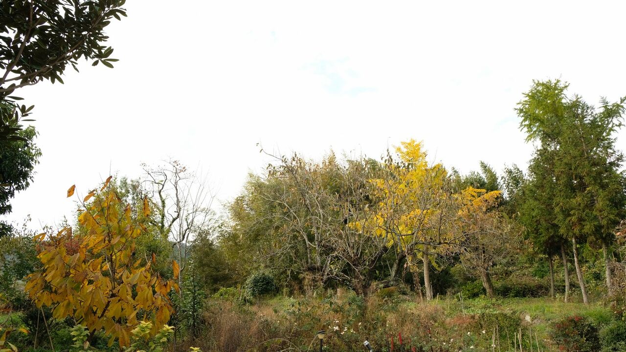 午後4時ごろ。夕日に照らされ、黄葉した公孫樹が綺麗。
