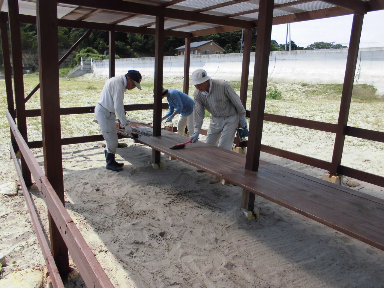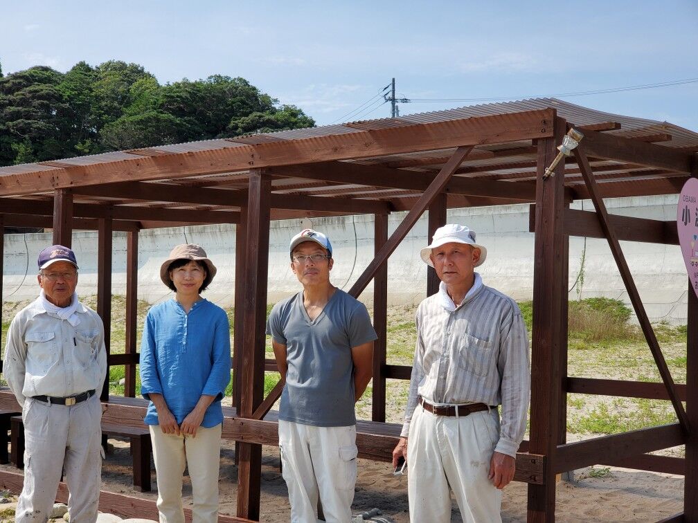 その年に福島県いわき市小浜町の砂浜に設置させていただいた「小浜心の駅」のメンテナンスに行ってまいりました。本来ならば、地域のみなさまとのお茶のみ交流会を開催するはずでしたが、今年は会場準備のために、壊れた屋根やテーブルを修繕、柱にもたっぷりと防腐剤を塗布してまいりました。朝5時過ぎに新潟県小千谷市のNPO法人おぢや元気プロジェクト事務局を出発、いわき市小浜海岸10:00到着順調に作業が進み、設置当初のような仕上がりになりました!!地域のみなさまに喜んでいただけたら嬉しいです!色々なことがありますが、春は必ずやってきます!明けない夜はありません!できることをして、前に進みましょう!(*^▽^*)/