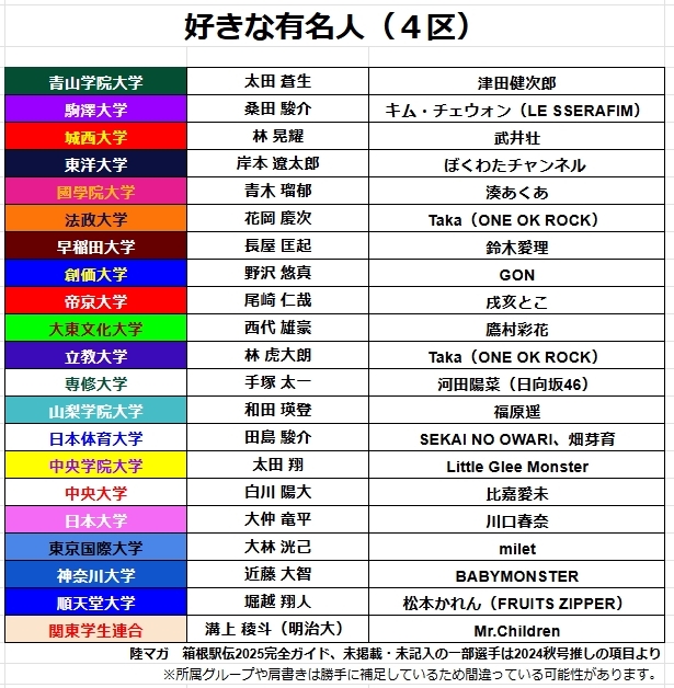 箱根駅伝2025 選手名鑑 より『好きな有名人』