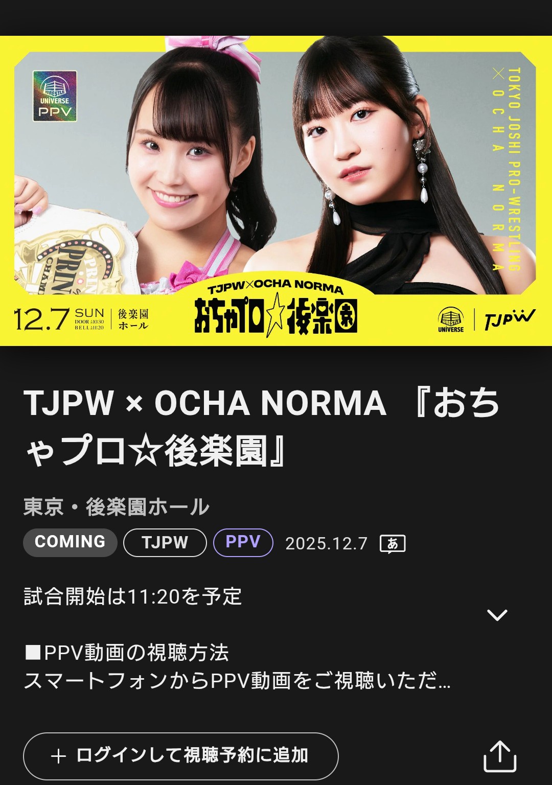 【タイトル】TJPW × OCHA NORMA 『おちゃプロ☆後楽園』