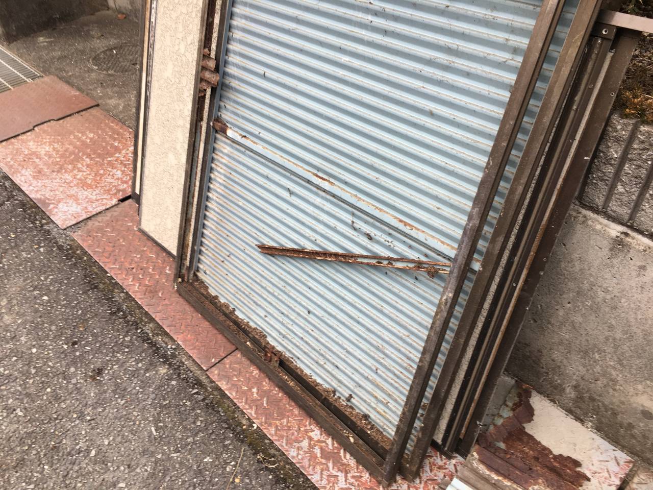 そして糞を取り除いたあと、もう使えそうもないこの雨戸も撤去しましょうということで、雨戸を横にスライドさせようとしますが動かない。