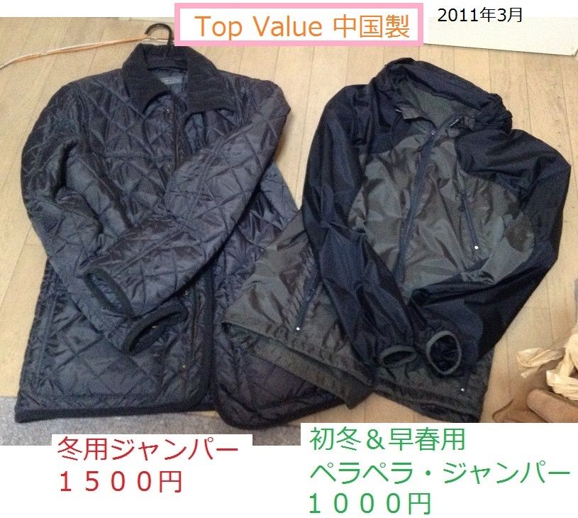 真冬用のジャンパーが、1500円で、初冬・早春用のペラペラのジャンパーが、1000円。