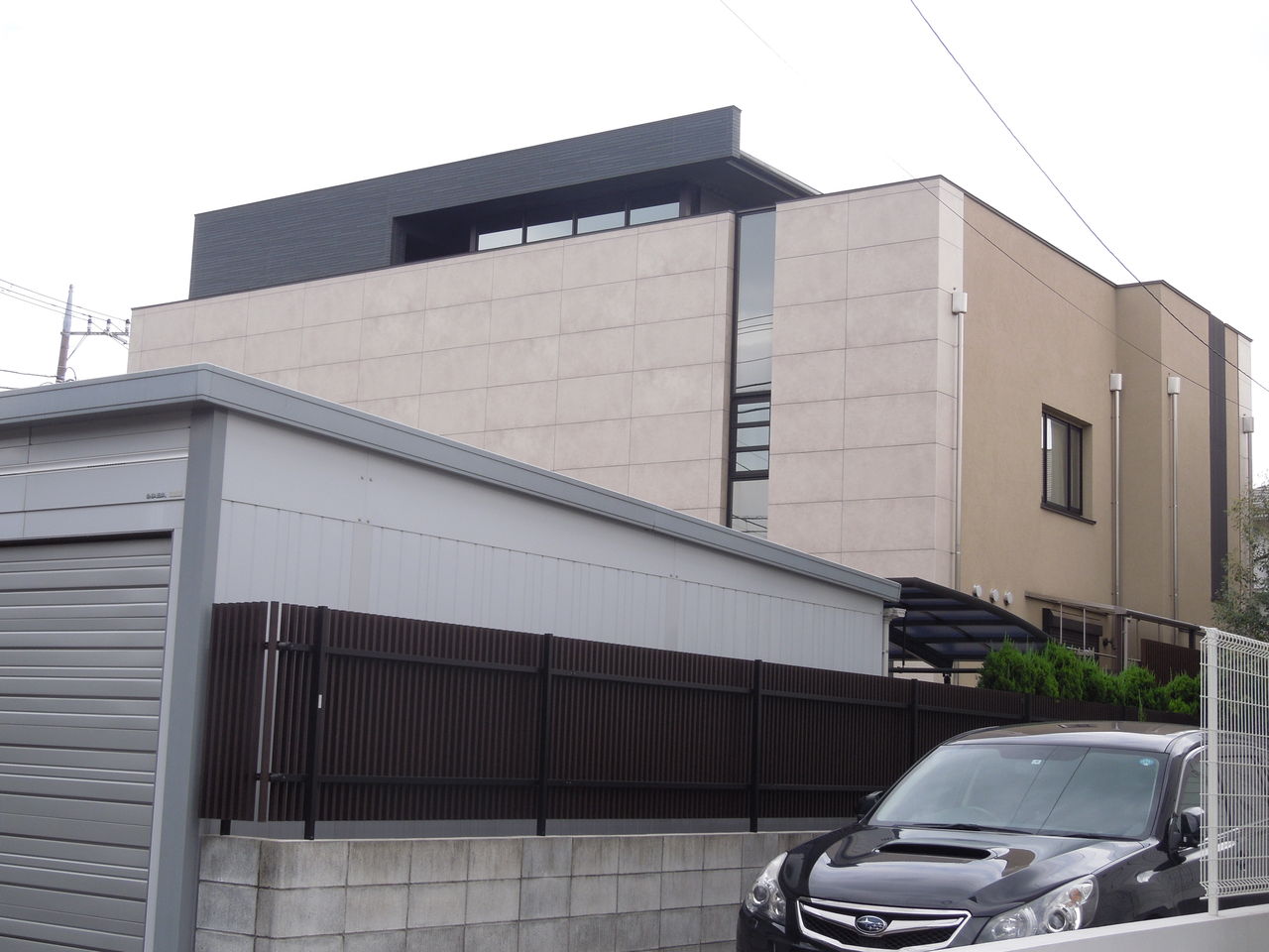 2020年06月14日 瀬田に3階建て陸屋根の豪邸がありました ここらへんは普通の屋根の家ばかりなので陸屋根だと物凄く目立ちます。そのうえ結構大きい家なのでこの地域では際立って見えました。 コンクリ打ちっぱなしの塀と植栽の緑がいい感じで景観を作っています。 豪邸では珍しく家の中ではなく外にガレージがありました。