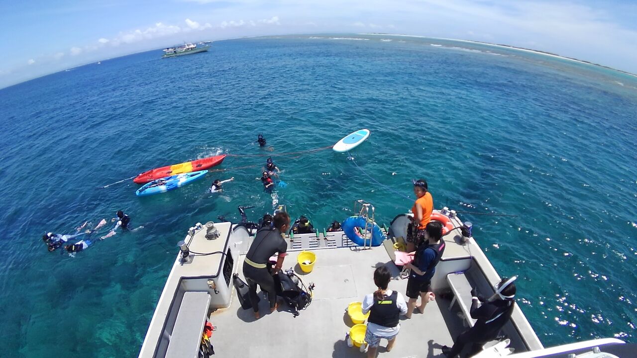 ミス・アースジャパン候補に選ばれた方のコンテスト用の映像にて、ウミガメと泳ぐシーンを撮影したいとの事でテレビ局がご乗船です。今回は水中撮影も私達に一任された形での依頼だけに燃えますね~。もちろん、バッチリ撮影してきましたが、はてさて?仕上がりが楽しみですね~。※画像は別の日のモノになります。