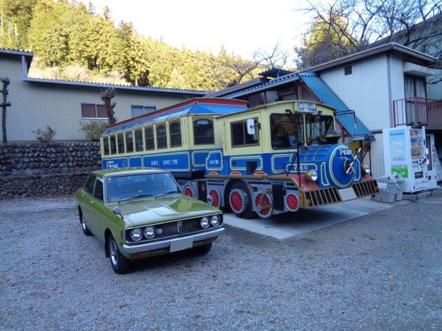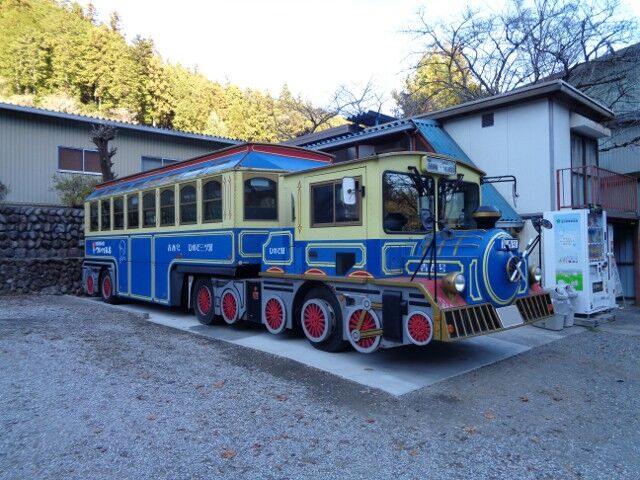帰り道、都道184号沿いに2023年に老朽化のために引退した、日の出町のつるつる温泉のトレーラーバス・青春号が展示されているのを見つけました。