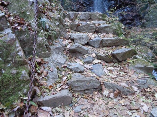 近くまで登る石段には鎖が用意されています。