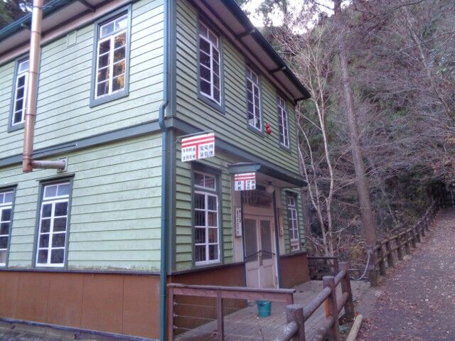 移築した郵便局の建物の木工屋は休みのようでした。