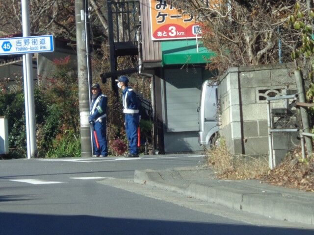 マラソンをやっているらしく、川の対岸を走る都道45号・吉野街道に行くよう指示されました。