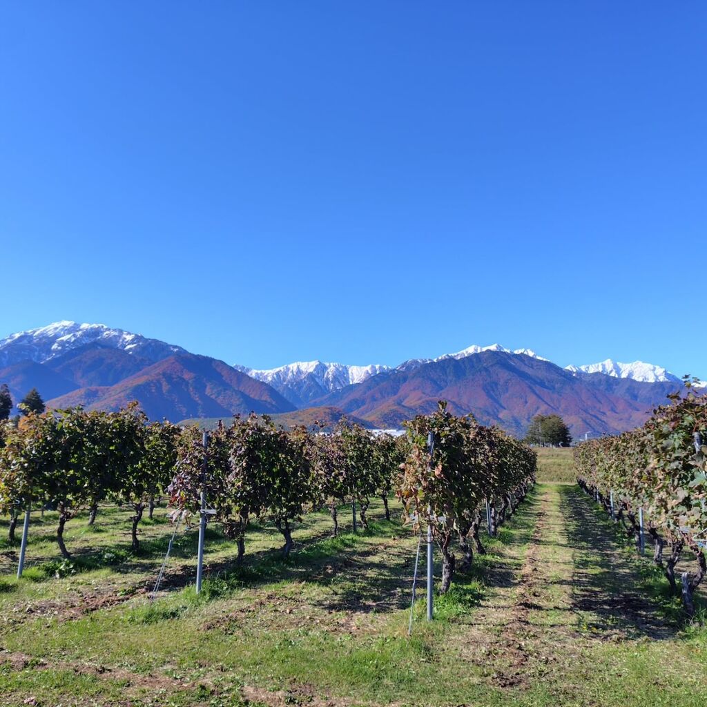 大町の組合の中でも、一番北にある「西沢組合長」のワインぶどう畑です。