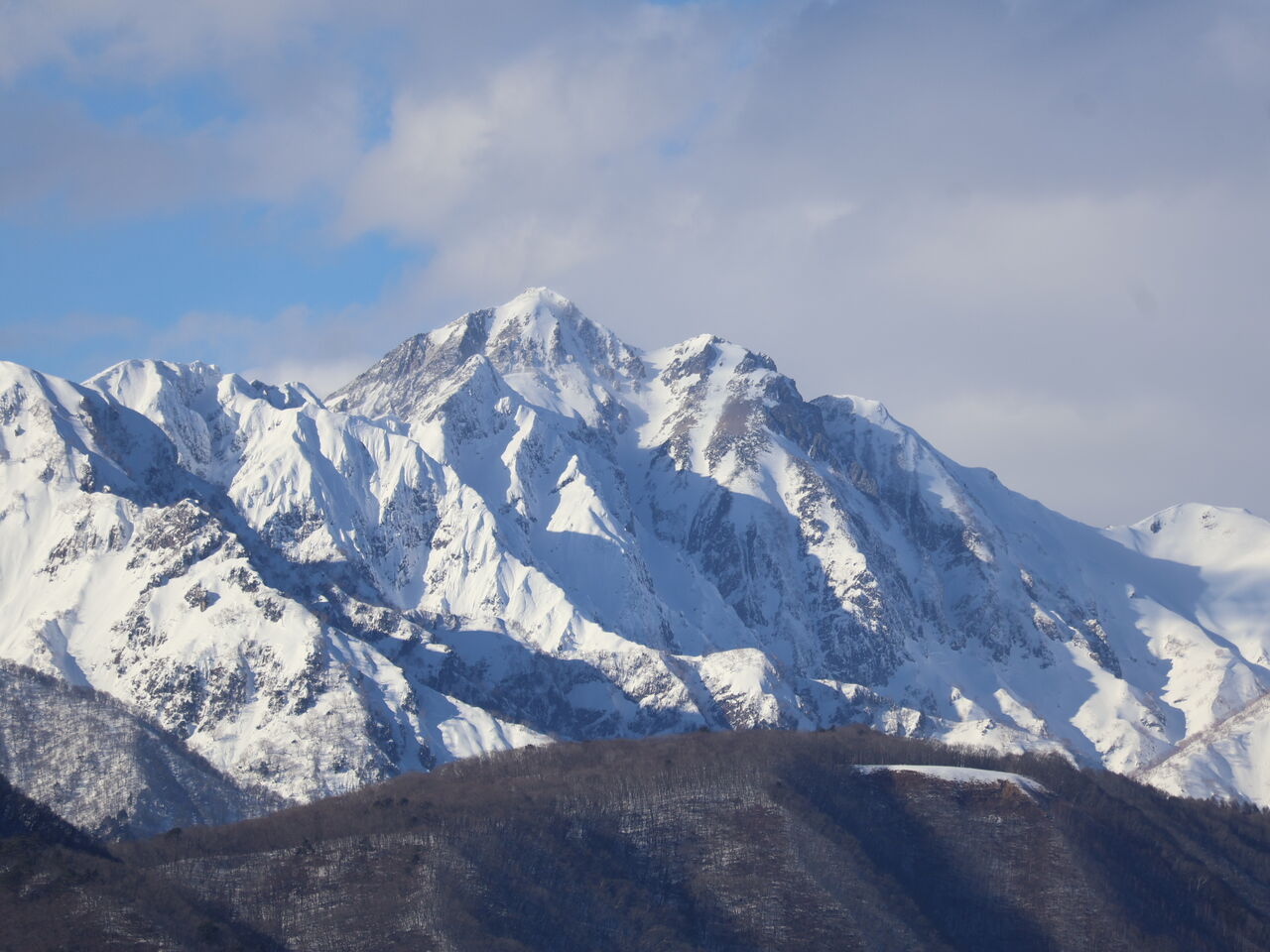 5月には「種まき爺さん」の雪形が現われる「爺ヶ岳」