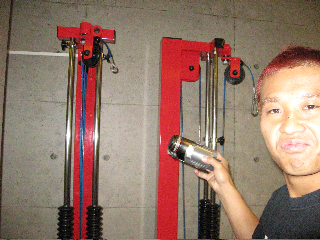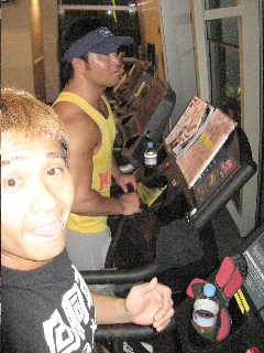 武重は、個人的に胸を鍛えたいらしいので、それにも付き合いながら、最後は、バーでアミノパウダーを飲み、有酸素とタンニングで終了だ!