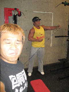本日も1人でトレーニング……しかし、撮影もかねて今日は、後輩で以前もトレーニングをいっしょにやった、俳優の武重勉とトレーニングに励む