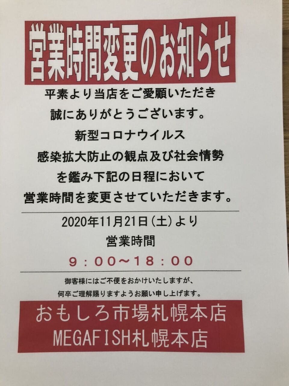 おもしろ市場札幌本店は本日8月27日を持ちまして屯田店への統合の為、本日までの営業の運びになりました。