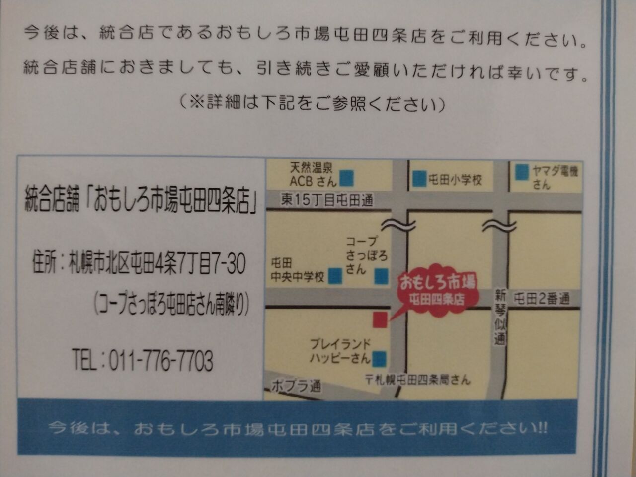 令和5年8月27日(日) 札幌 リサイクル おもしろ市場 店舗統合のお知らせ