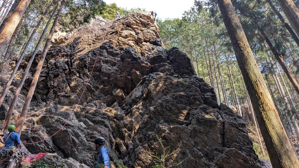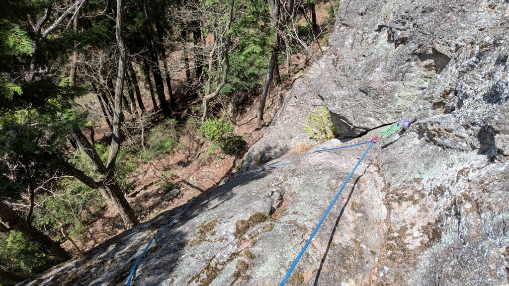 3点くらい支点を作り登るも手詰まり⋯。一度降りてルートを再度考えたりしながら、得意な妄想をはたらかせてなんとか1ピッチ。