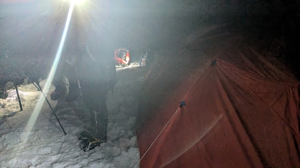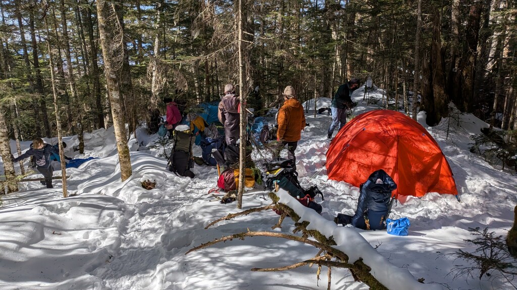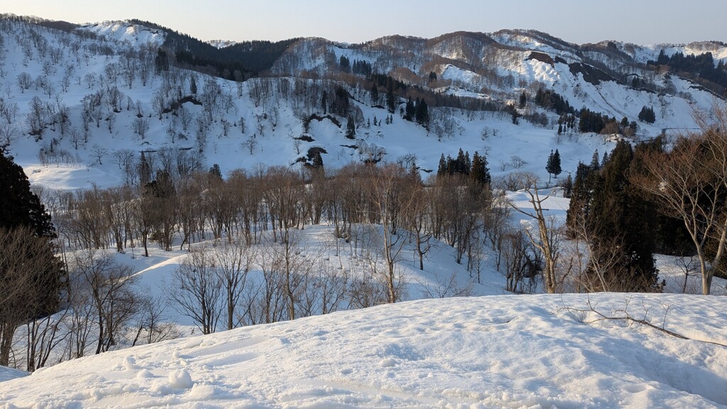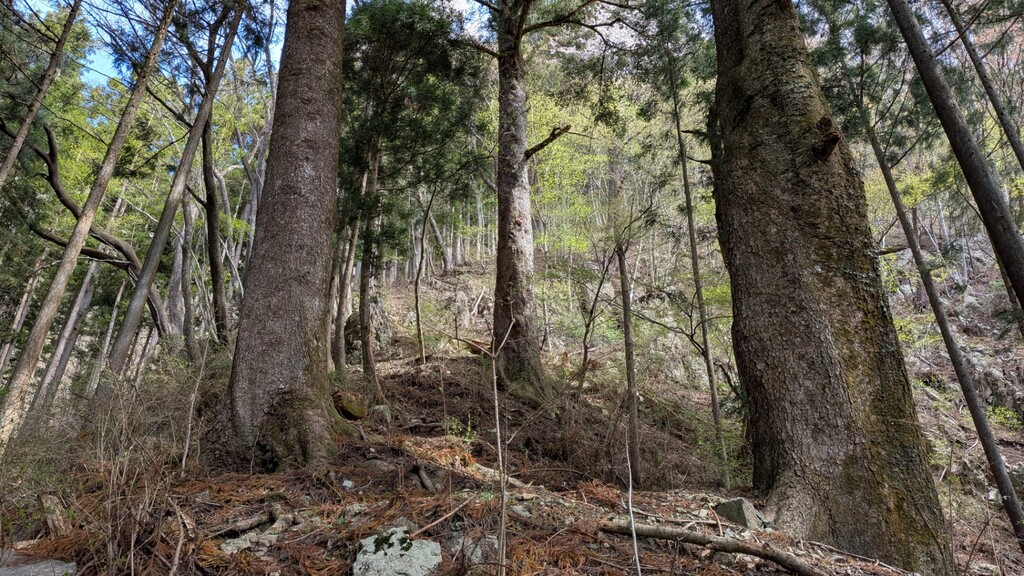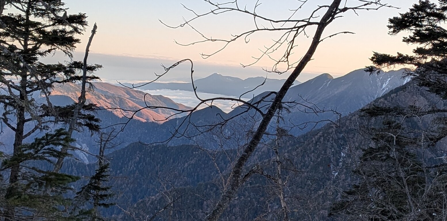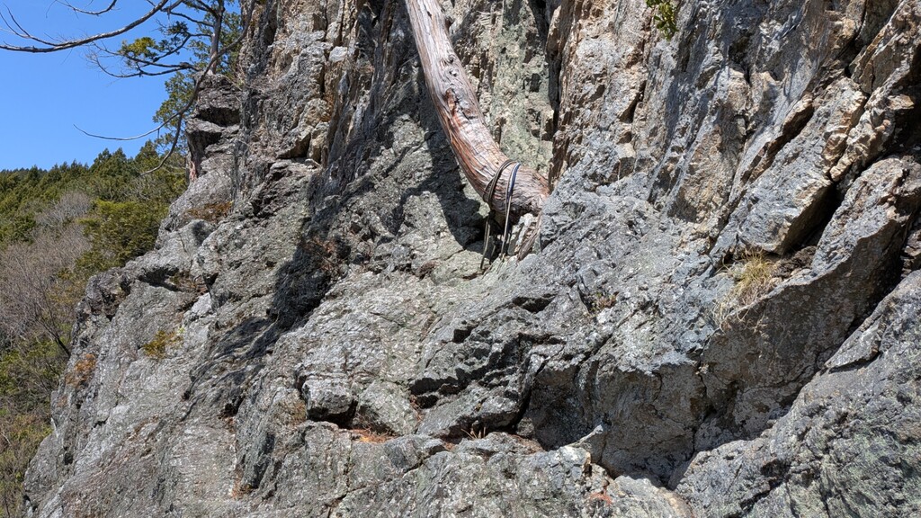 木にスリングがあって、1ピッチの終了点。かなり時間を食っちまった。支点回収しながらいったん降りて、Aゼロしながらなんとか戻る。