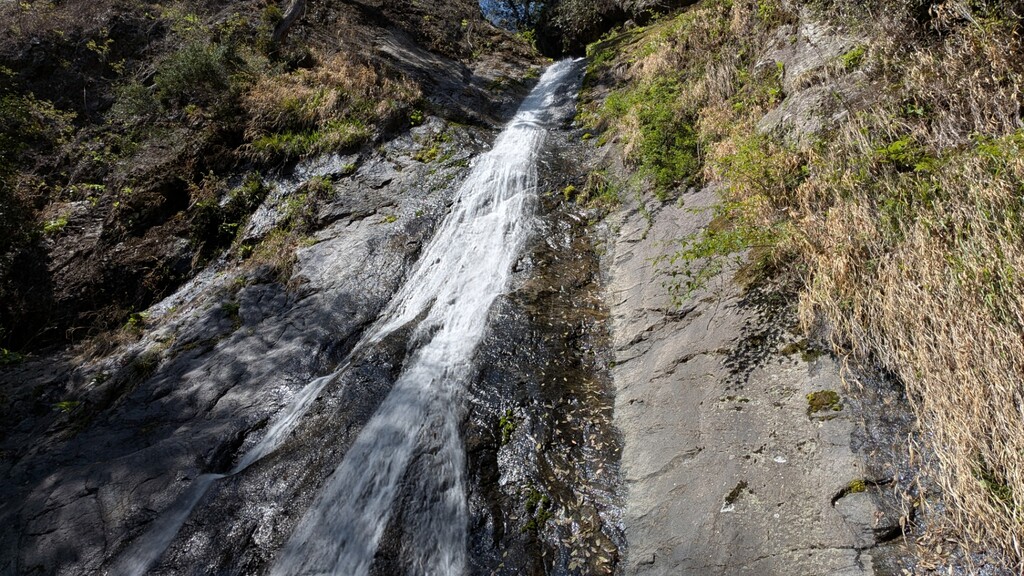 想像していたのとだいぶ違う。50m位の落差。水量は多いですが、静かな滝でした。天狗滝を過ぎればすぐゴールです。