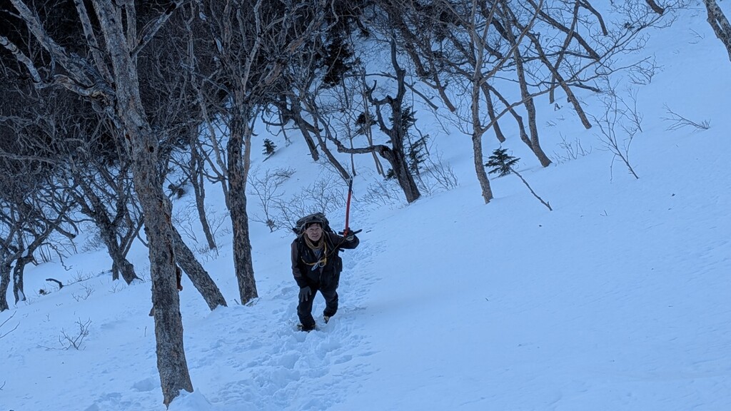休み休みゆっくりジグを切りながら詰めます。汗、ダラッダラ。