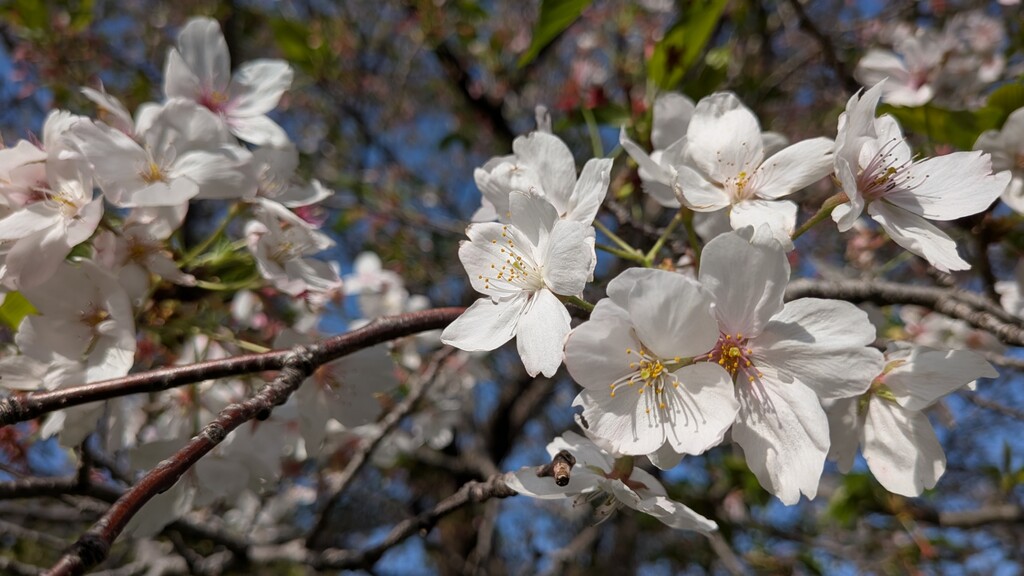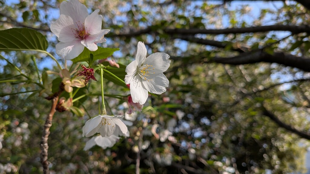 葉桜どころか、散ってしまった桜。しぶとく、しれっと咲いている桜もありました。
