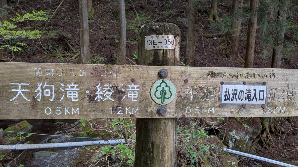 JR五日市駅から西東京バスに乗って、千足で下車。看板にある天狗滝、綾滝の更に上につづら岩のゲレンデがあります。