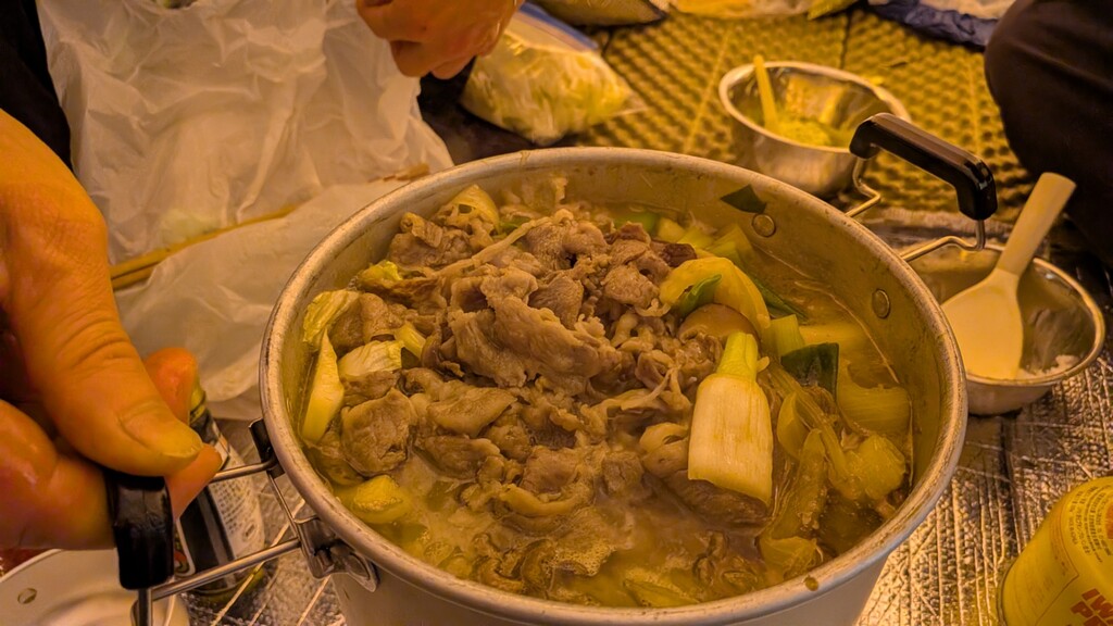 クライミングシューズの足の親指が痛いのと、足の小指や指と手のひらがつりだす。昼メシ休憩。
