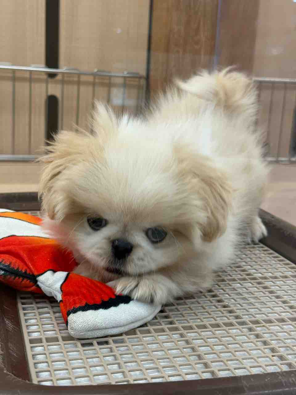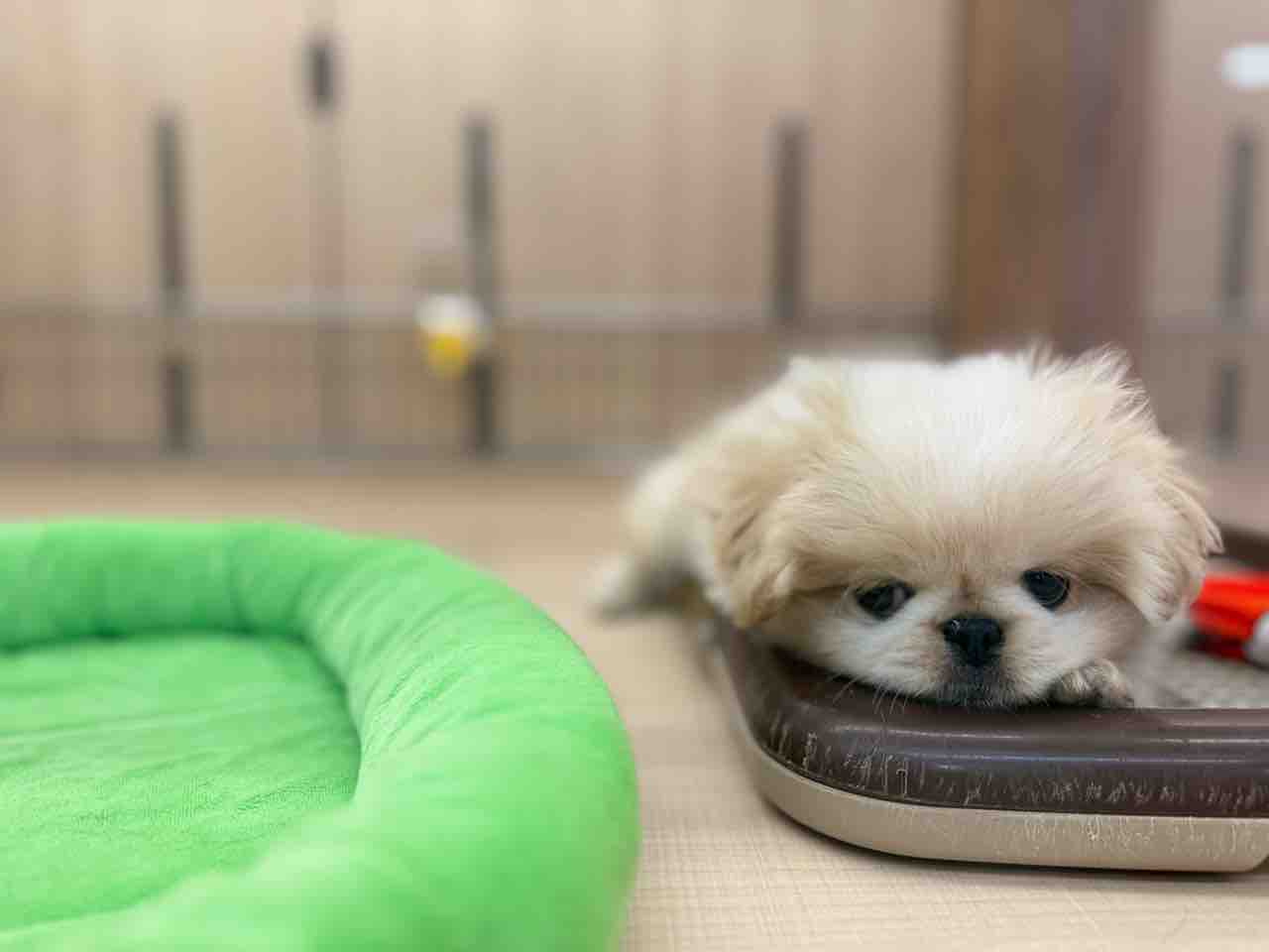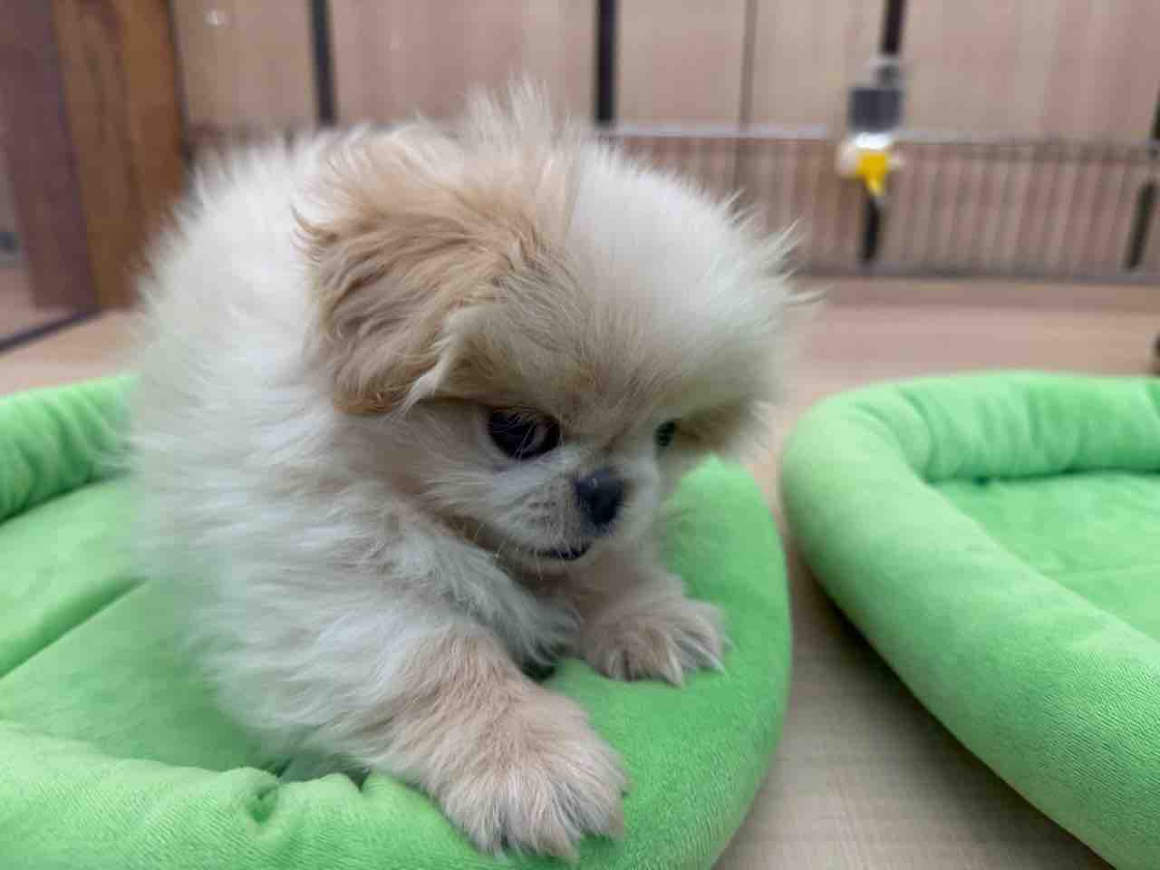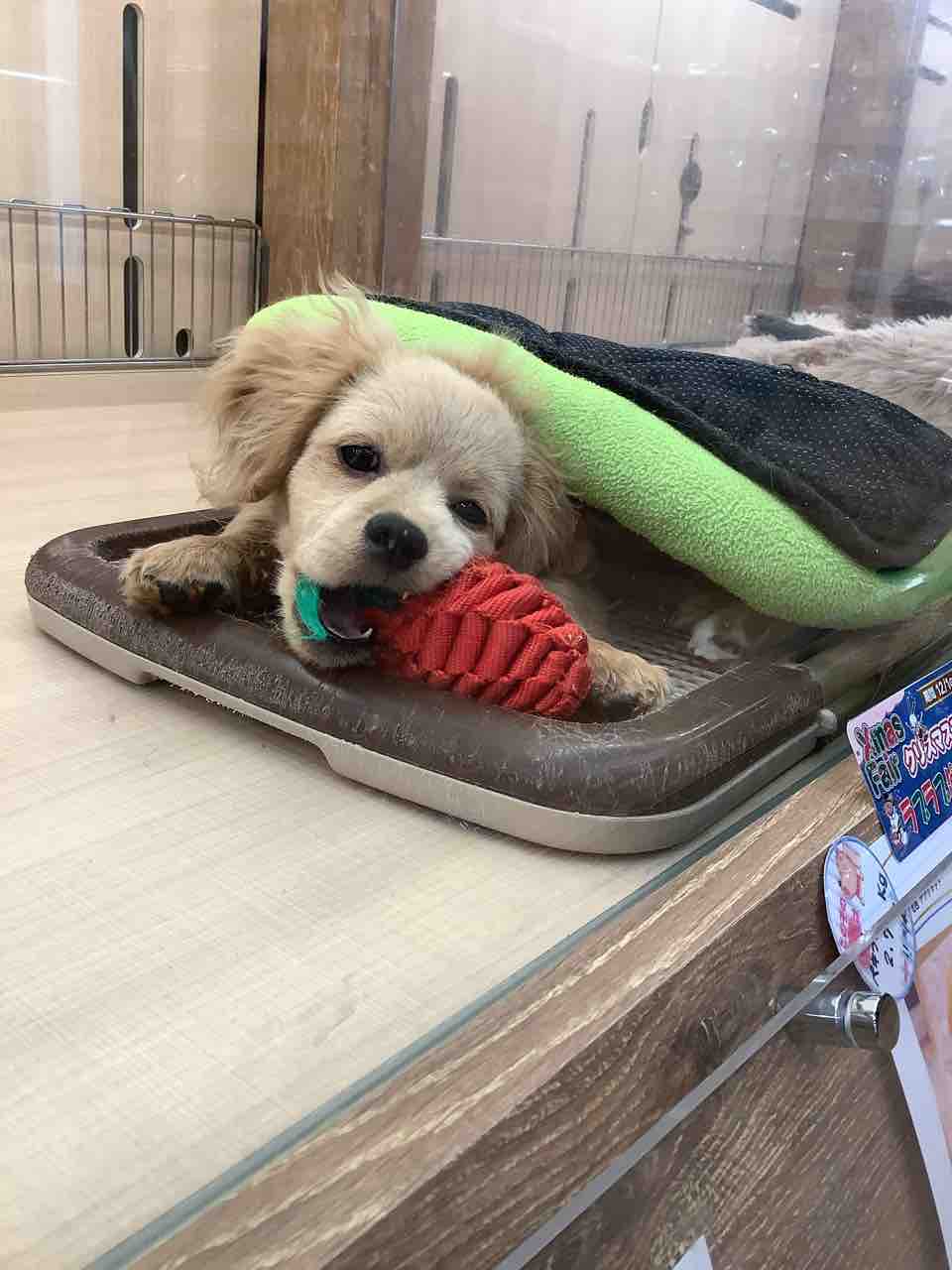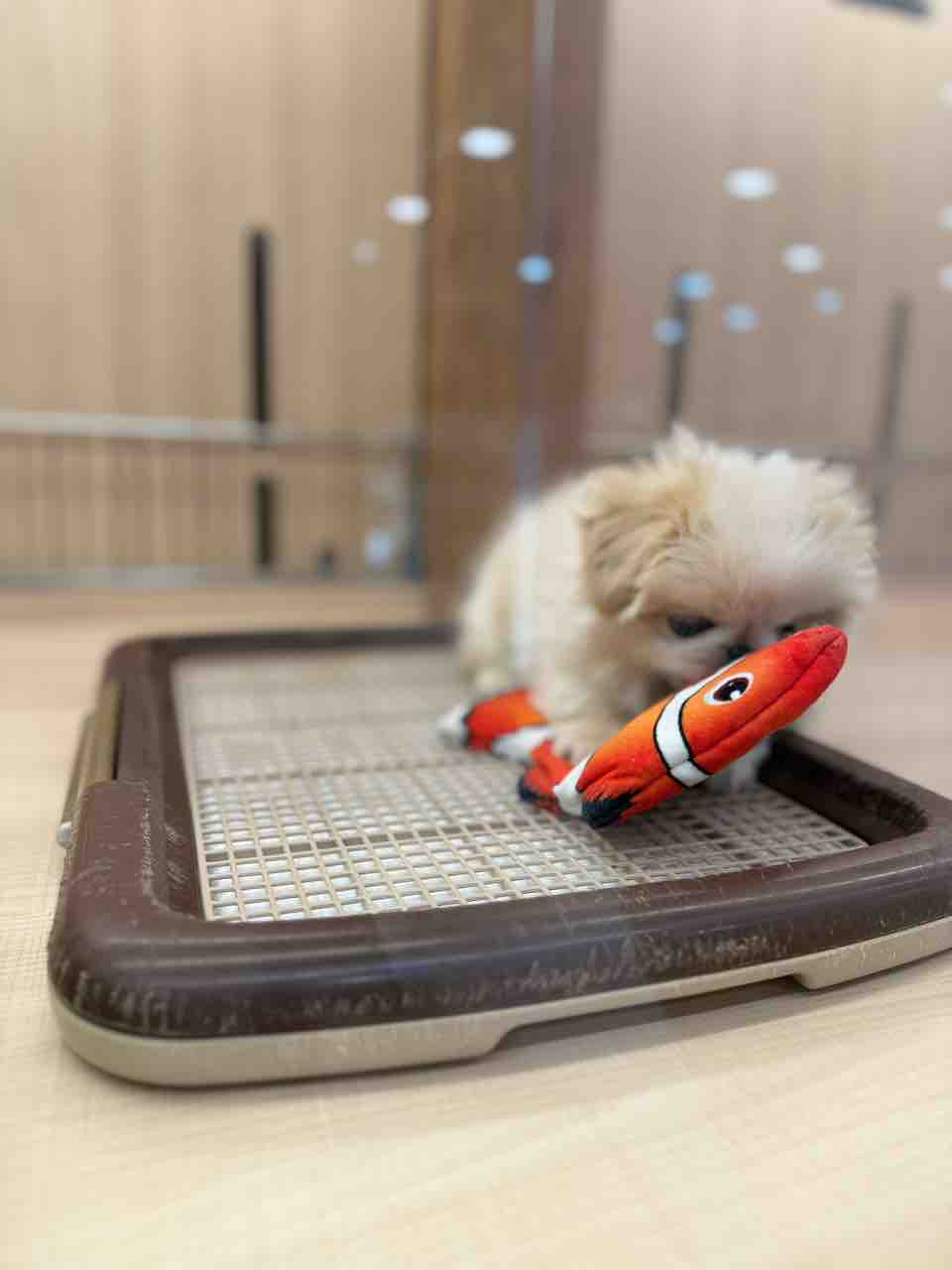 202512月10 顔ペチャ可愛い💕 こんにちは🫧今回ブログを担当させて頂きます蔭地野です☺︎本日紹介させて頂く仔はペキニーズちゃんです♡顔がペチャンコで可愛いんです😍お魚さんとずっと遊んでます小さくてふわふわ~是非会いきてください🍀