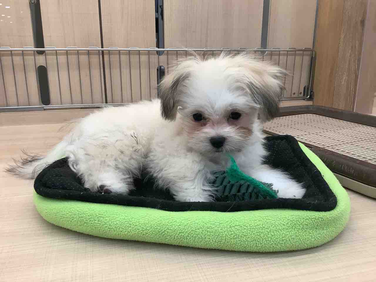 202511月26 小さくてふわふわ♡ 今日は朝から晴れて陽の光が暖かく感じますね☀️本日ご紹介するのは可愛い女の子のマルポメちゃん♡おっとり優しさが表情に出てますね☺️最近可愛いくカットしてもらいました🎀そうしたらお顔が白くなりました!きゅうりのおもちゃをあむあむ🥒🧸※この仔の抗菌ではありませんよー笑色々言いたいことがあるかな?足を崩して遠い目をしてますね秋だから物思いにふけってる…?🍂このふわふわで可愛いマルポメちゃんぜひ会いに来てみてください♡