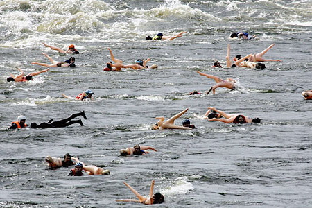 ネットなどで安く求めたダッチワイフは基本的に二シーズンにわたって使用され、参加者はそのダッチワイフの数で制限。ダッチワイフのレンタル料200ルーブルと参加費150ルーブル、それにライフジャケットのレンタル料50ルーブルの計400ルーブルを支払えば誰でも参加できます。今大会のスポンサーは家具店とモバイル関連業者。運営はほとんどボランティアによって行われたということです。