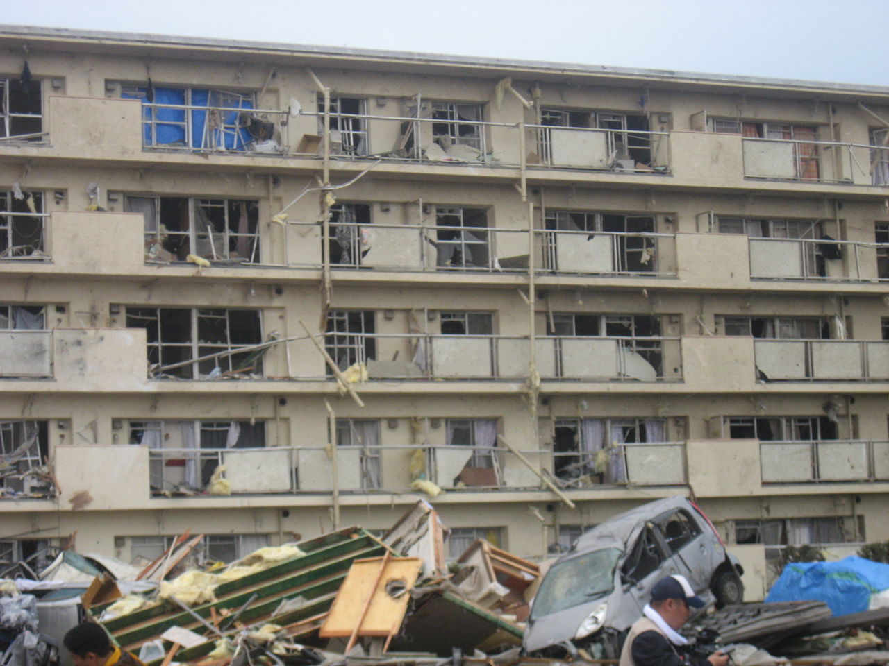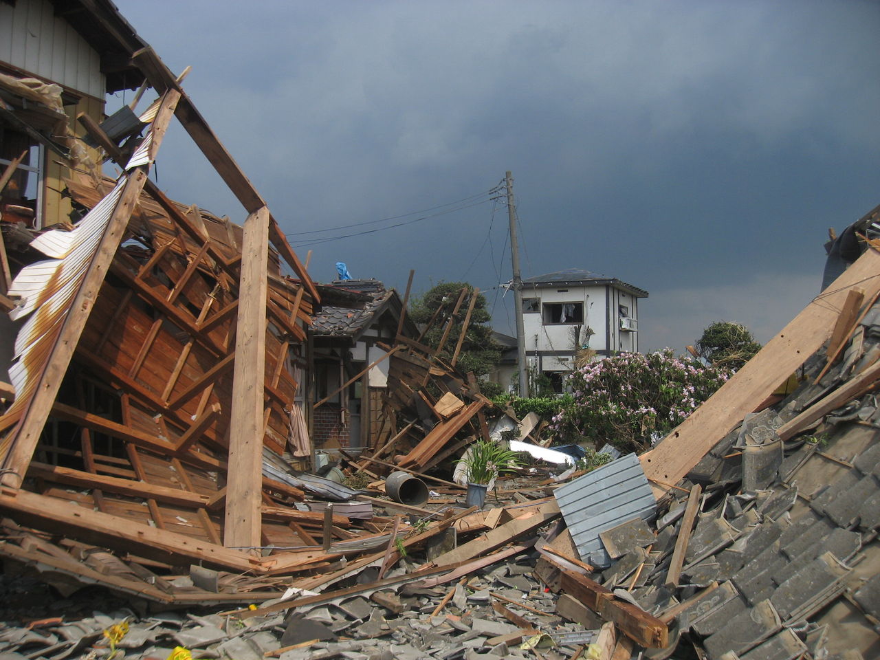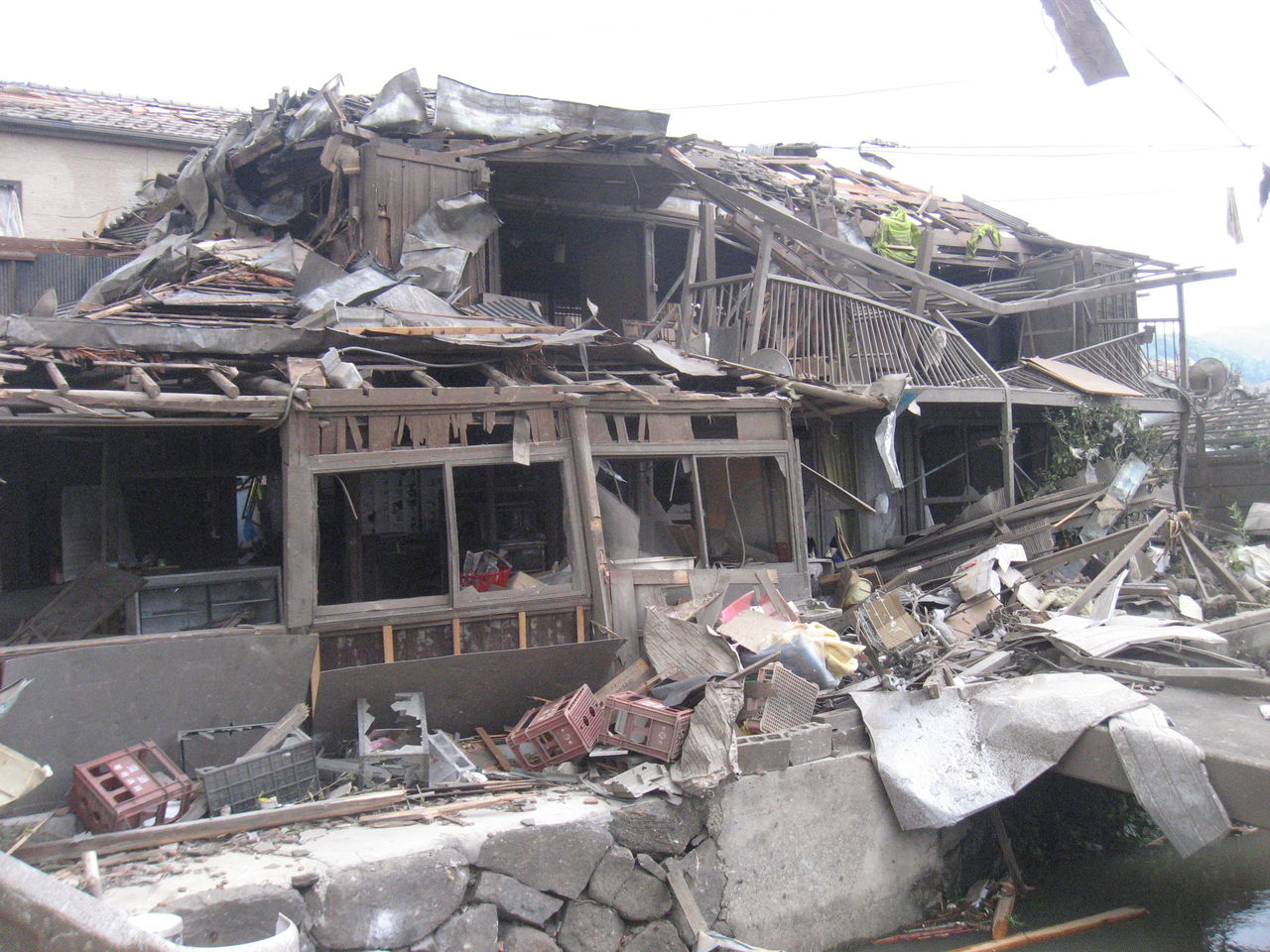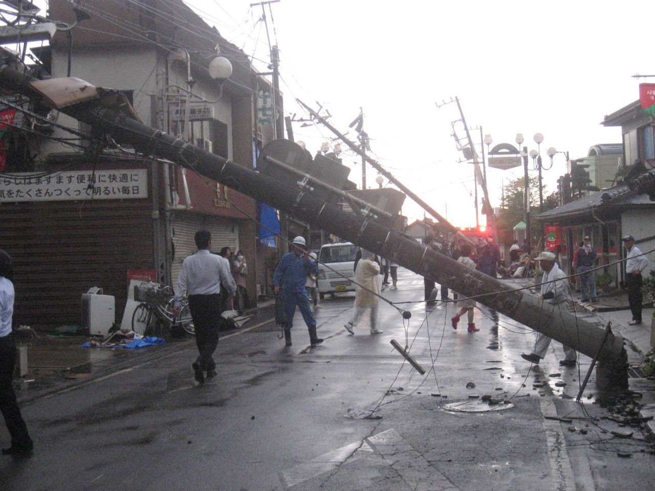 以下、通り過ぎた後の現場の様子です。テレビ等の放送で見た方もいらっしゃると思いますが、本当に悲惨な状況です。震災の時よりも、ひどい様子です。木造の家が飛び、信号や大木が根こそぎもぎ取られていました。