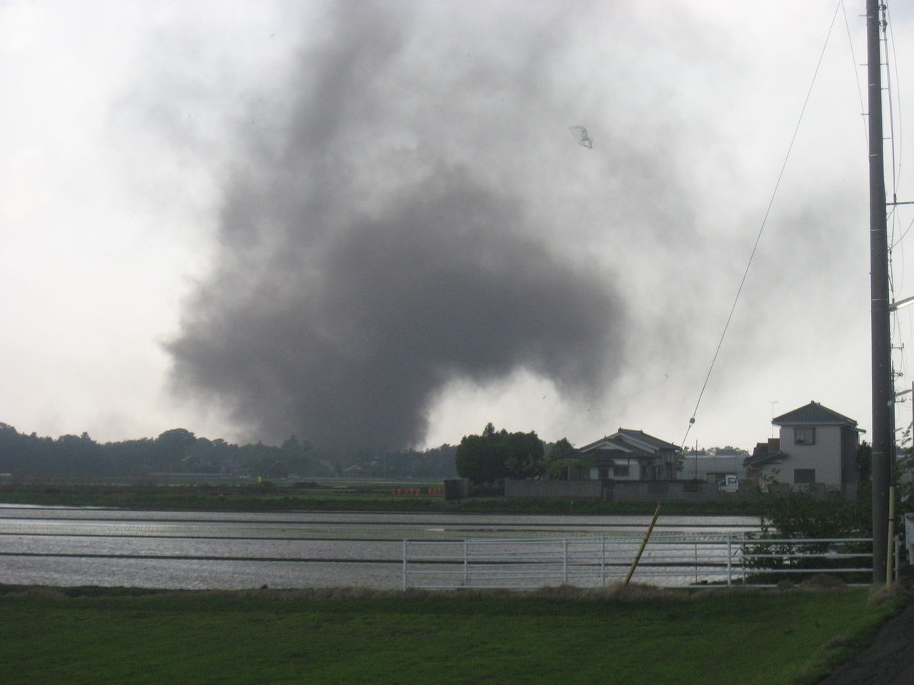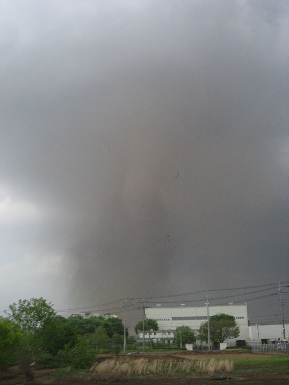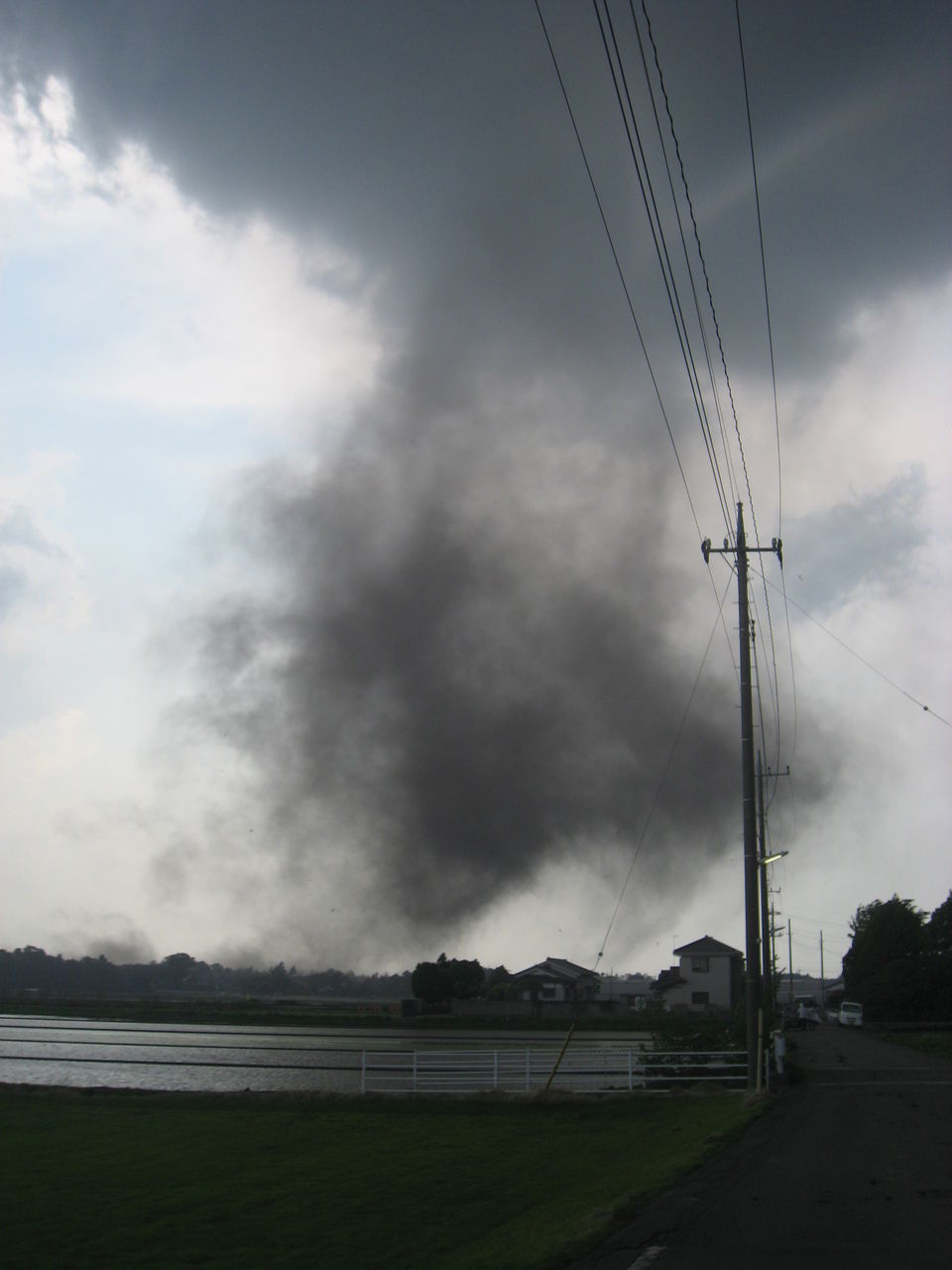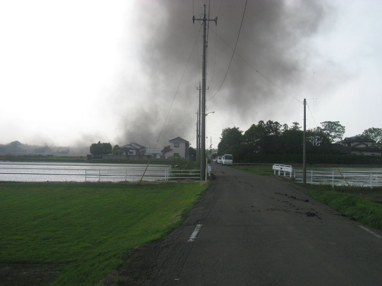 ゴールデンウィークの最終日の5月6日につくば市では、大変なことがおきました。突如として、竜巻の発生です。私は、丁度発生直後に現場近くにいました。黒い煙のようなものが、急に起きたと思ったら、それが土埃になり、あたりは急速に暗くなっていきました。以下、その時の写真です。