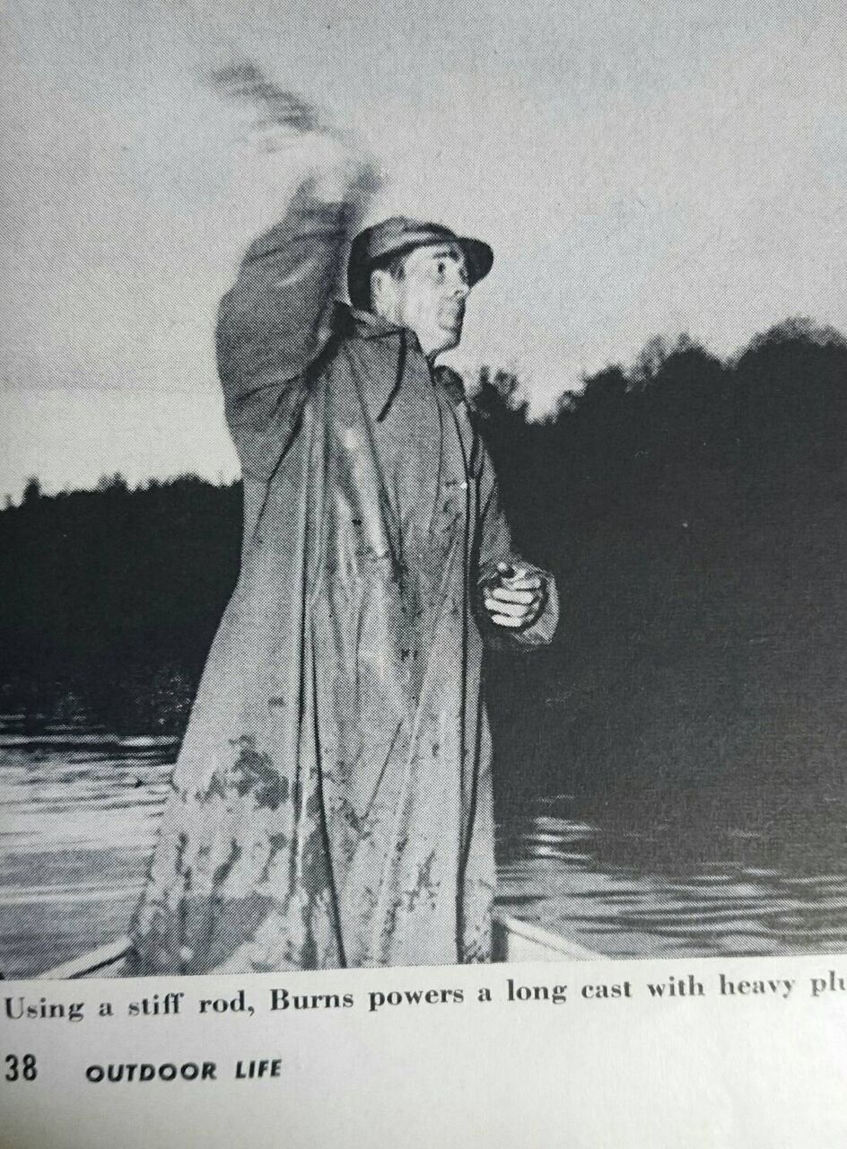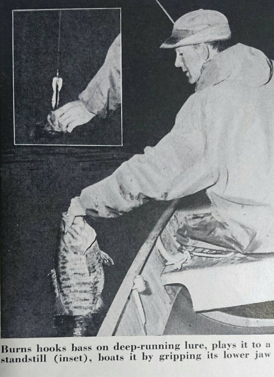 ライターの質問に答えて、確かに「ルアーを大量に失う方法」だと言い、ダース単位でルアーを持ち込んでいるとも言っていますが、のちにプラグノッカー、即ちスタックした場所に接近してルアーリトリーバーを打ち込んでで回収する事を覚えたともあります。それにしてもこの時代に凄い釣りをしてますね。