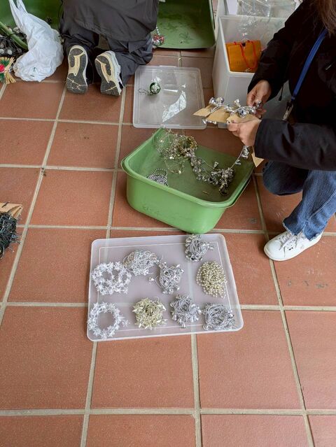 飾りは、種類ごとに分けたり、からまりやすいものは段ボールに巻きつけたりし、来年飾る時に取り出しやすいようにしました。