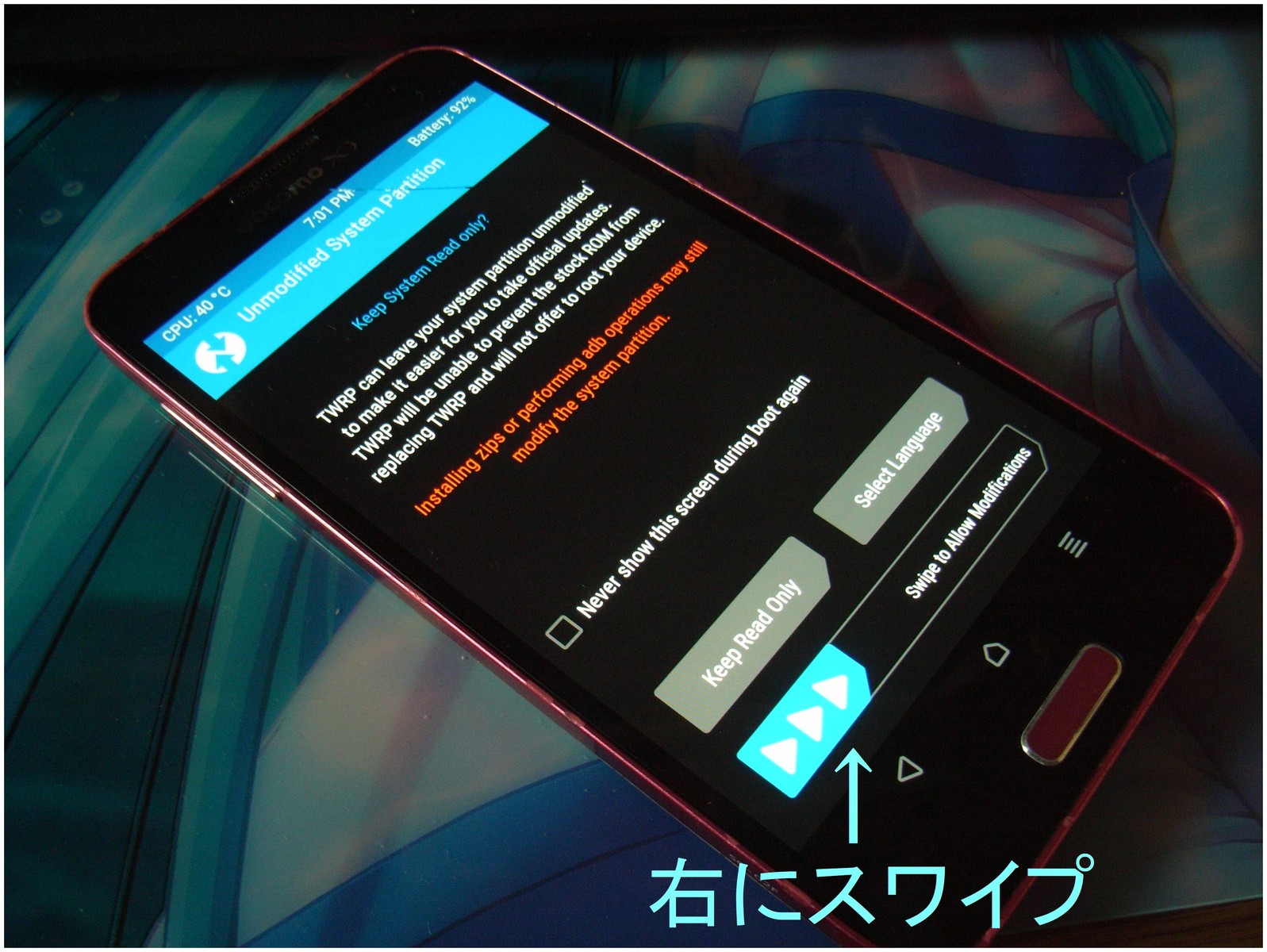 青い矢印を右にスワイプし
