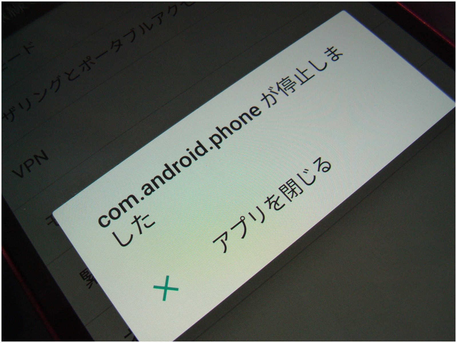 MODEMの焼きが失敗したのかな?と、再びOdinからやり直しましたが・・・、「com.android.phone が停止しました」メッセージがorz。「わからん、何でや?」とガックシしていましたが、ダメ元でSIMカードを挿入後モバイルネットワークをタップ。すると・・・