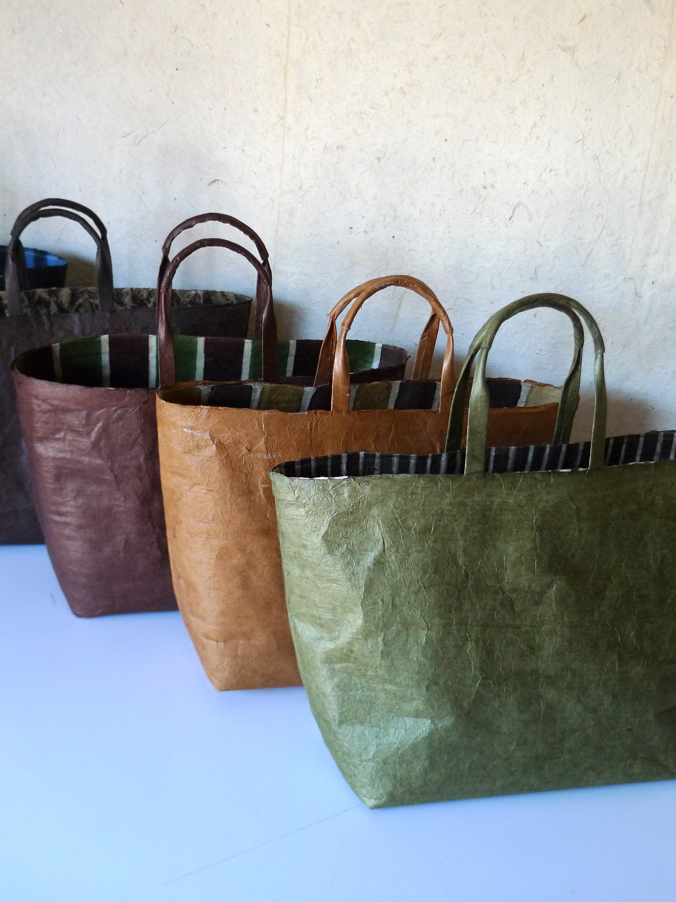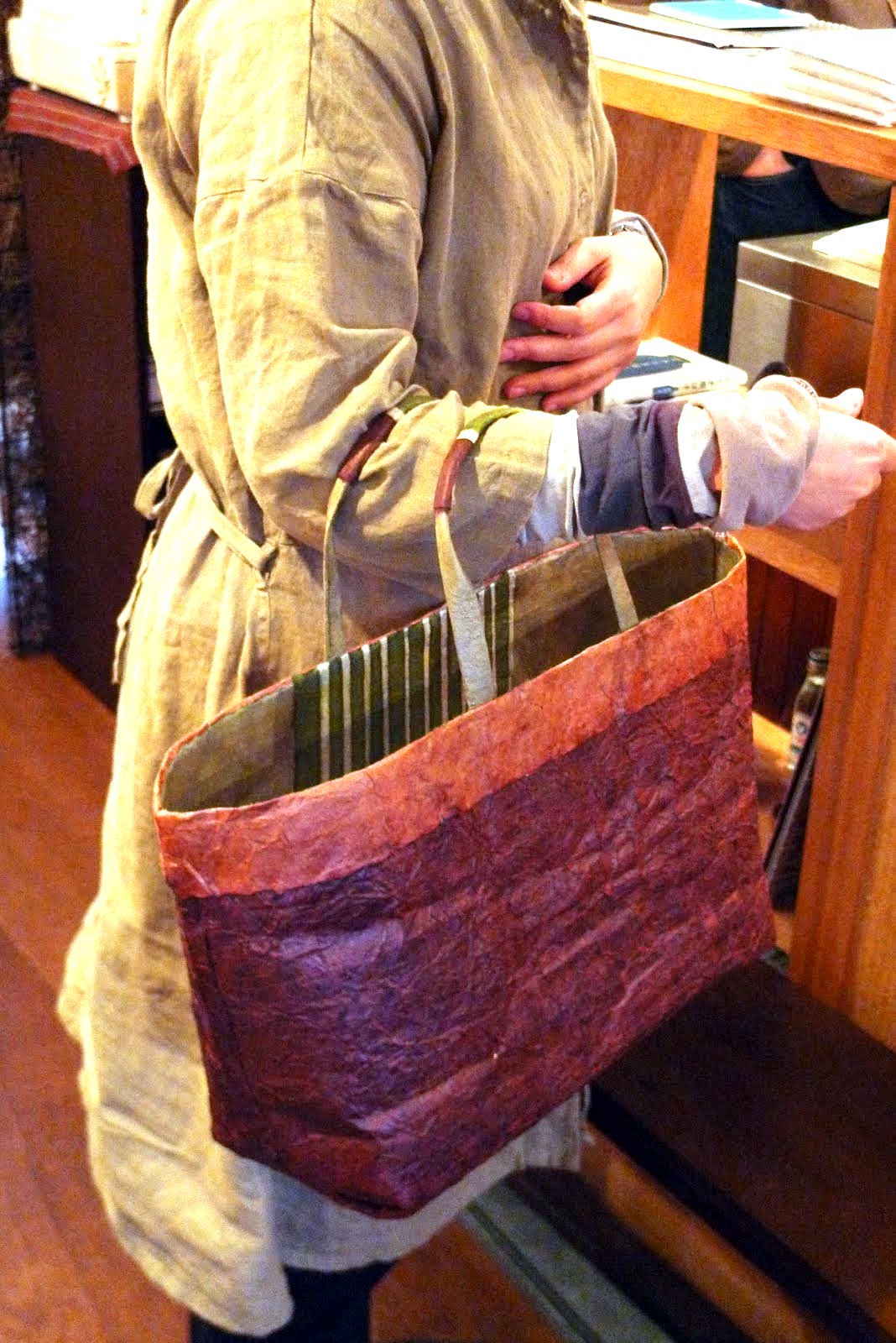 木の樹皮のような立体感あふれるプリーツ加工の紙を創作し、 「バック」という形にしました。