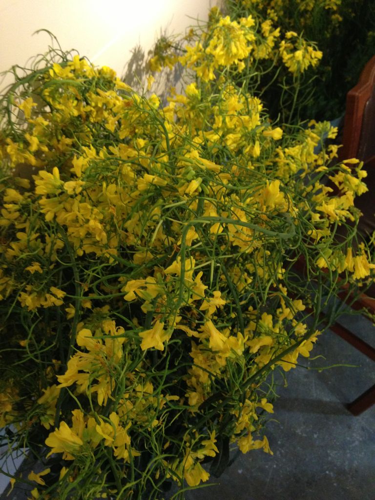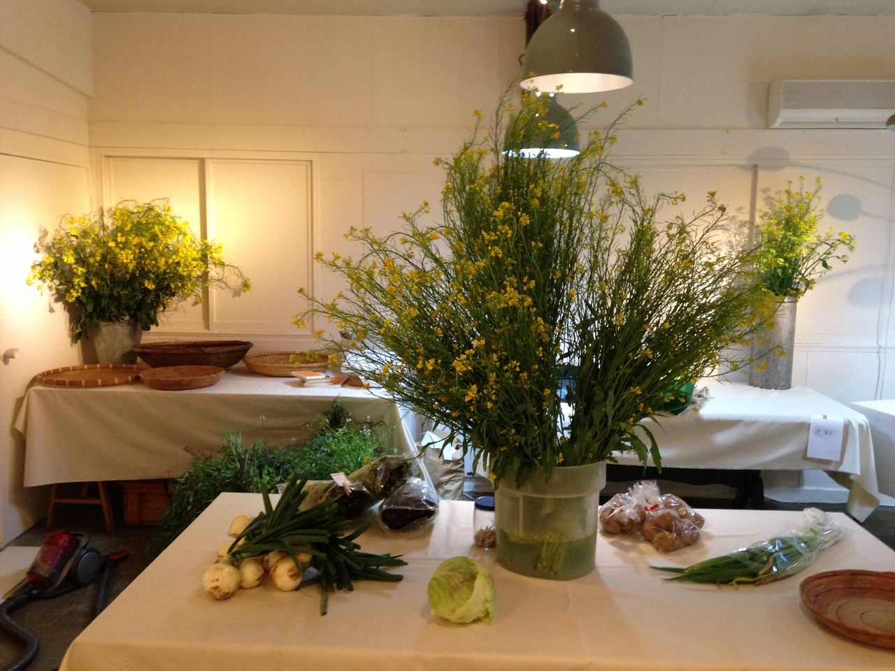 マーケットに飾られたのは鮮やかな「のらぼう菜」の花たち、
