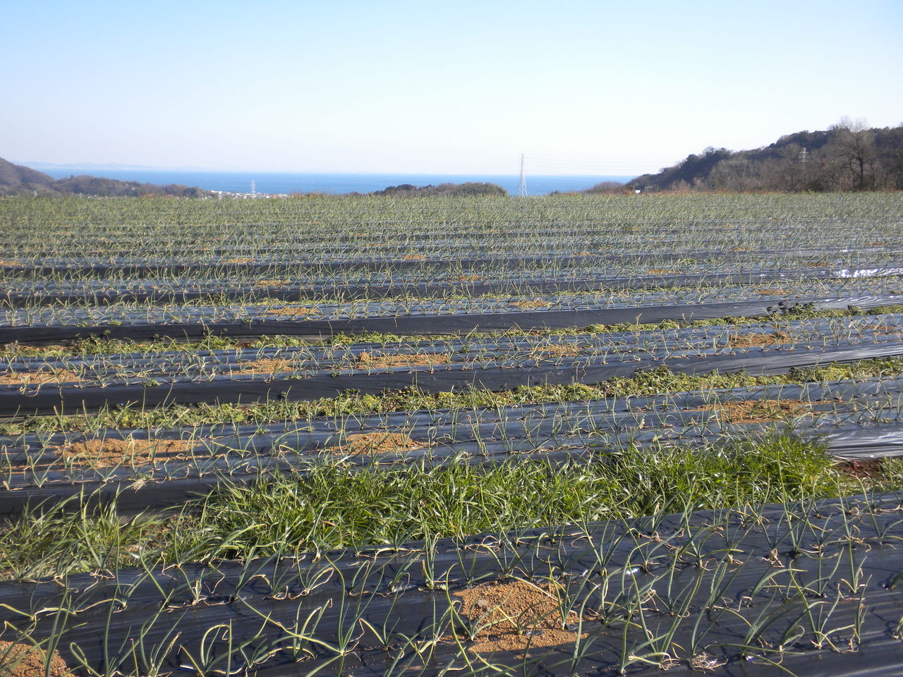 たまねぎ畑より望む相模湾も光輝いています