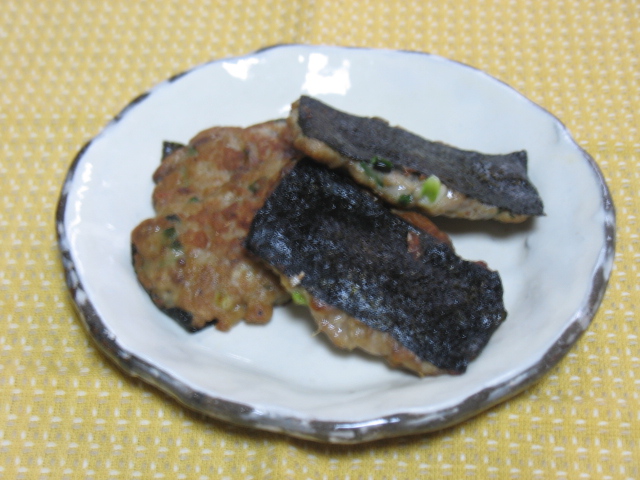私は間違えて片面に海苔にすり身をつけて、すり身の面を焼きつけました。