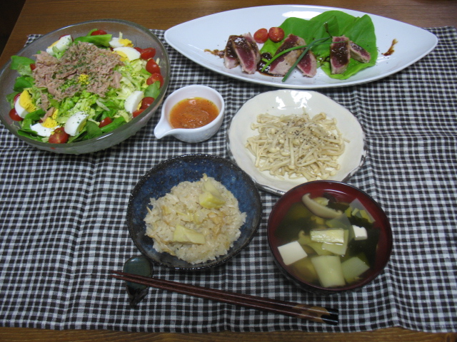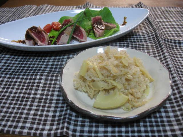 まぐろのレアステーキ&筍ご飯