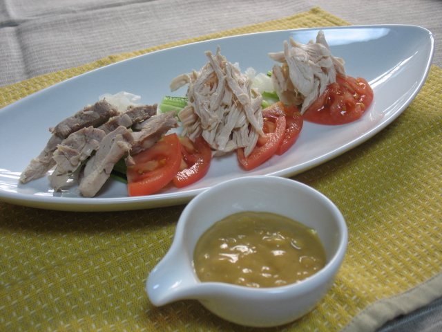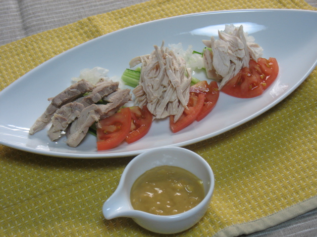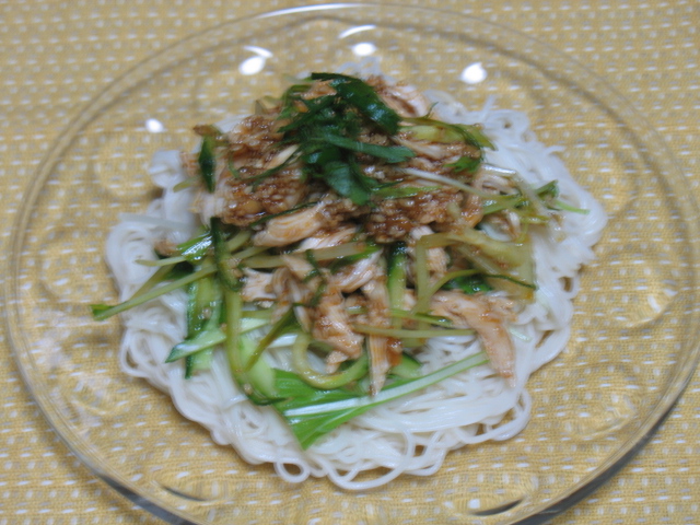 ひとつは、ささ身にいつものコチュジャンたれを冷やし素麺につけて食べるのと、