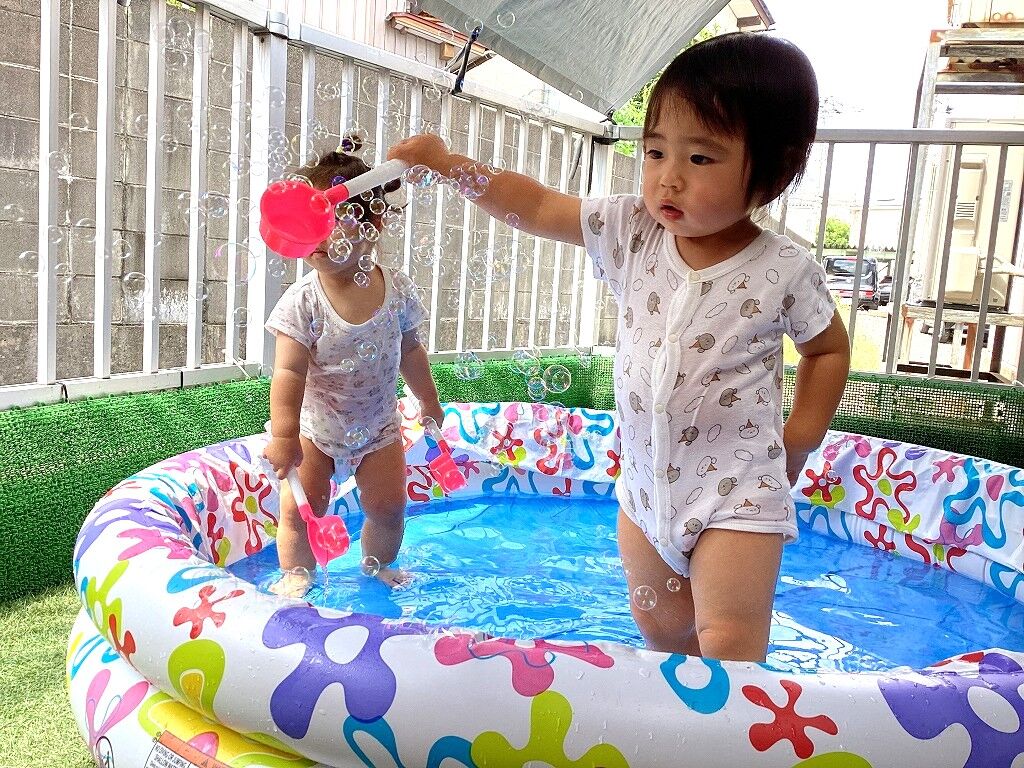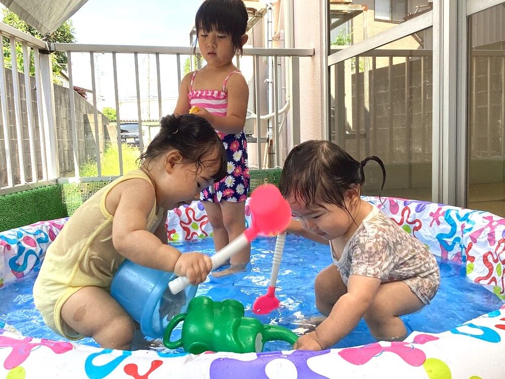 2024年08月29日 水遊び【のぞみ保育園】 今年も水遊びを楽しみました 水の冷たさが気持ち良いようでプールの中へ喜んで入っていき、ダイナミックに楽しむお友達もいました 初めての水遊びで泣いていた子も慣れると水がかかっても平気で、夢中で遊ぶようになりましたよ