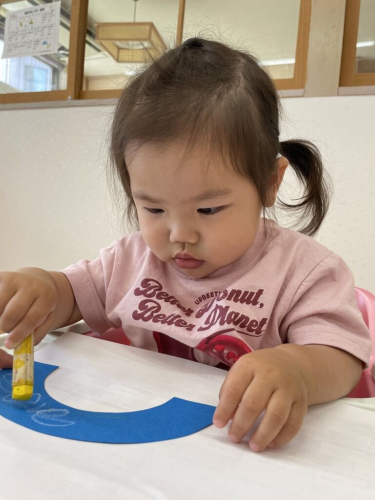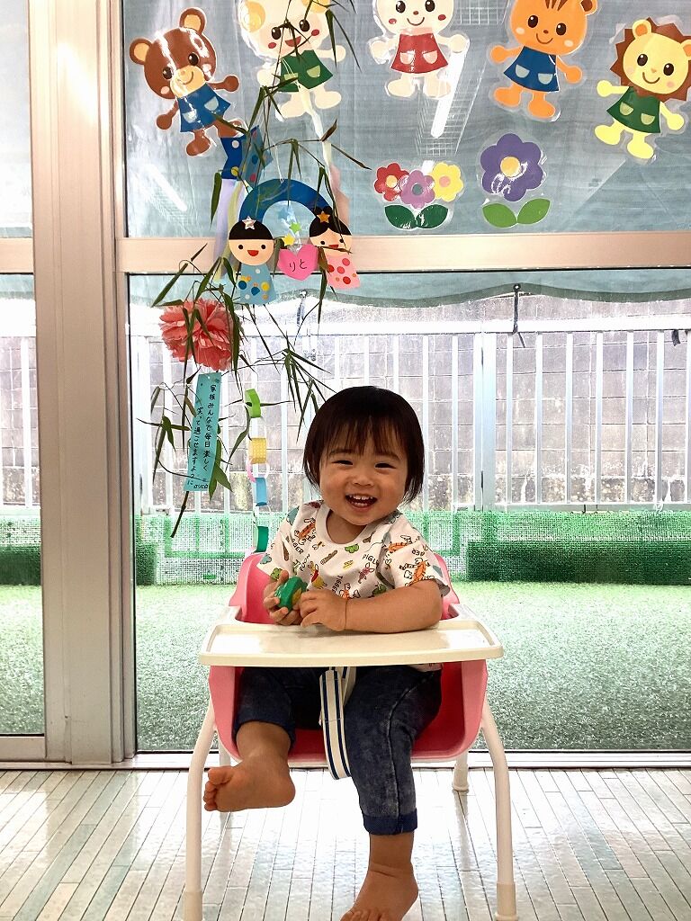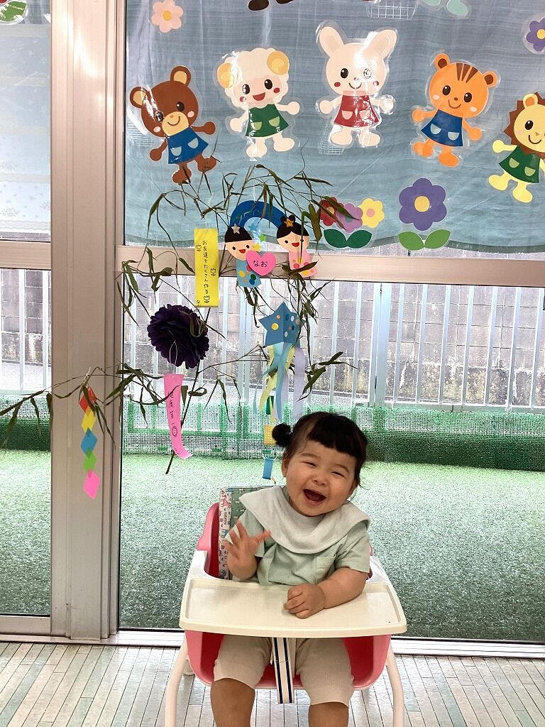2024年07月16日 七夕【のぞみ保育園】 七夕飾りの製作をしました シールを貼ったり、クレヨンで色をつけたりしました 手にくっつくシールを興味深そうに見たり、嬉しそうにクレヨンを握って手を動かしたり、子どもたちも製作を楽しんでいましたよ 飾り付けをした笹と一人ひとり写真を撮るときも、笹や飾りに興味津々の子どもたちでした みんなのお願い事が叶いますように