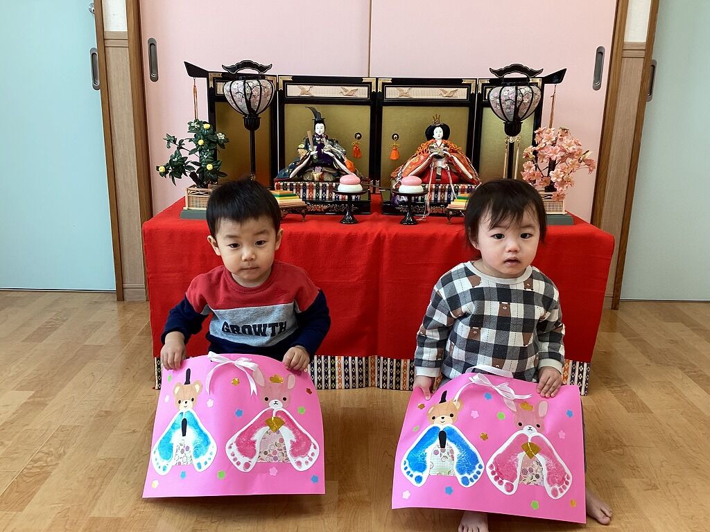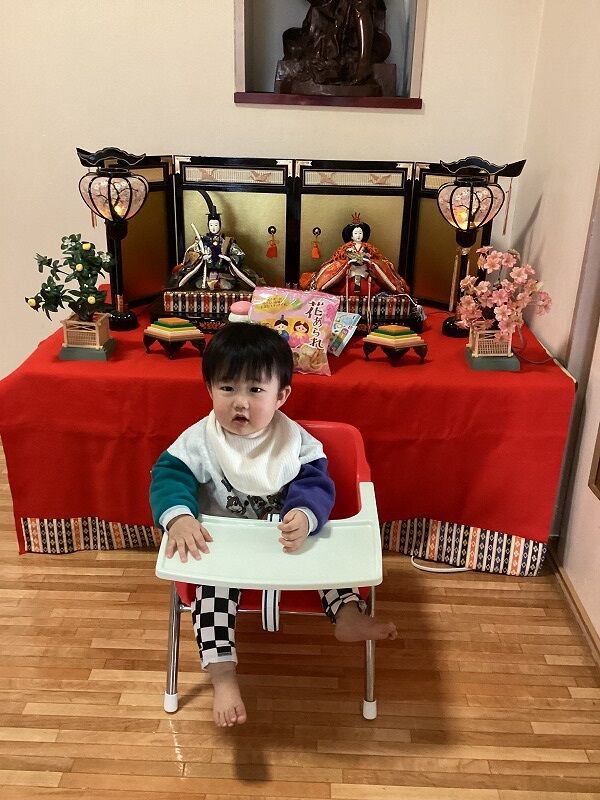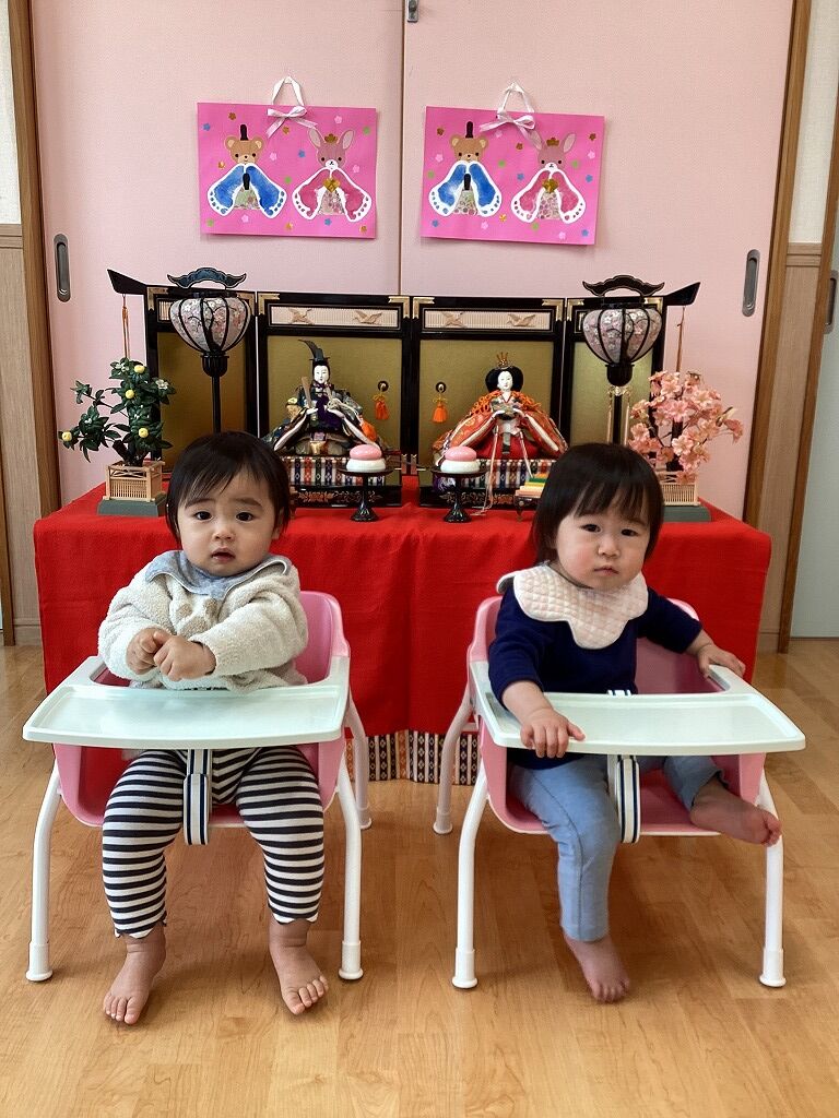 2025年03月25日 ひなまつり【のぞみ保育園】 雛飾りと一緒に写真撮影をしました。 おだいりさまと、おひなさまに興味を示してじーっと見ていましたよ。 撮影時、ニコニコな子もいれば、緊張した面持ちの子、泣く子もいましたが、 お菓子をもらってご機嫌さんでしたよ。 これからも子どもたちが健やかに元気いっぱいで過ごせますように