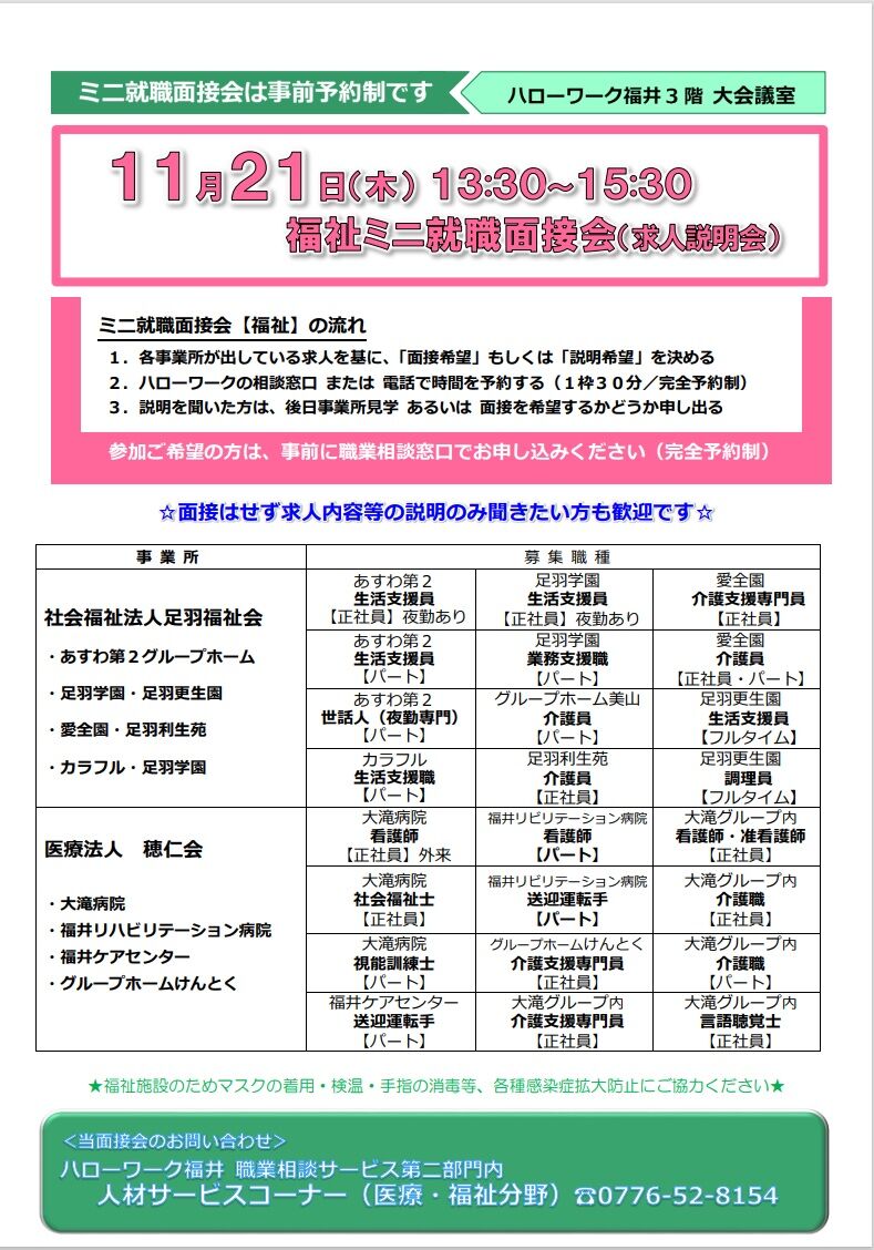 なお、就職面接会の詳細については後日掲載予定となっております。