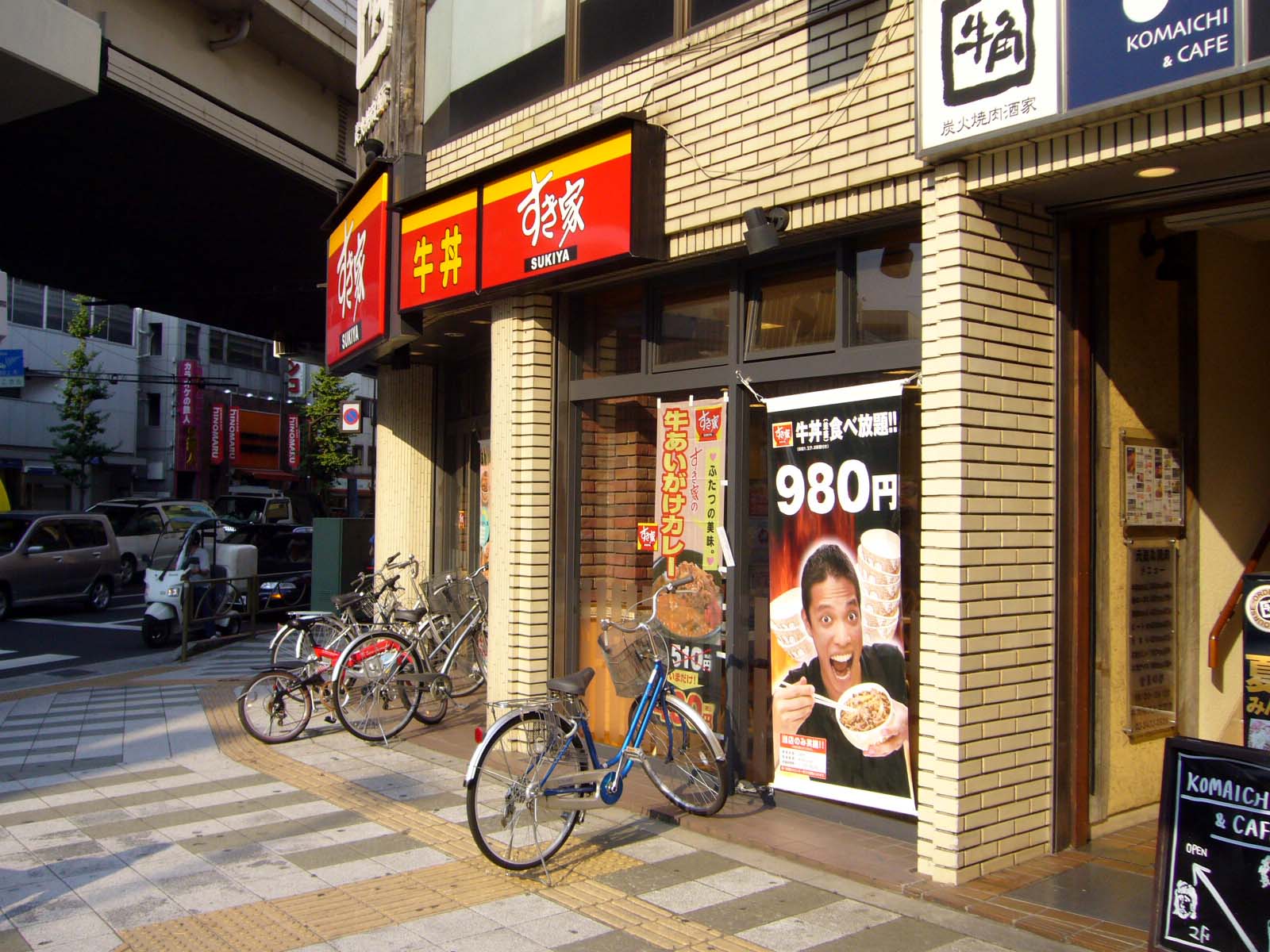 花月駒沢店の並び、ちょうど駒沢大学の正門方面に246を折れる交差点ですよ、この【すき家】!