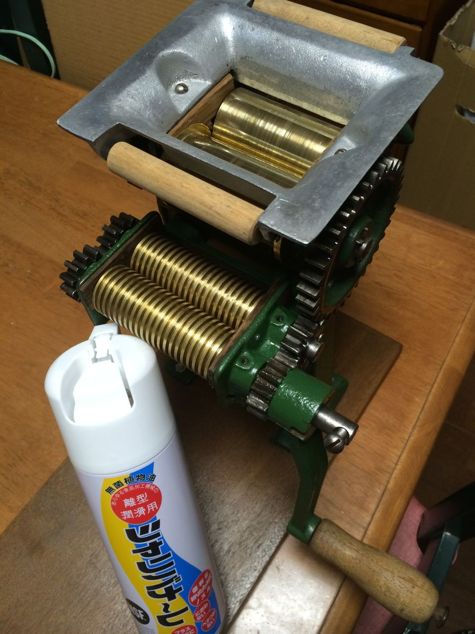 小野式A型のレストア(ってほどじゃないけど)は入手してから着々と進み、夜な夜なの作業により圧延ローラー研磨・切刃の溝洗浄・ホッパの研磨や木ロール洗浄&ステン丸釘への打換えなどなど完了
