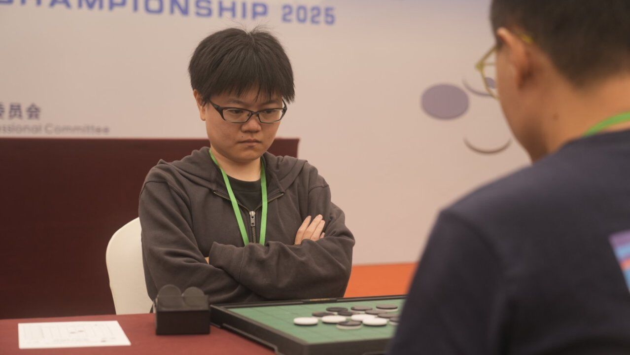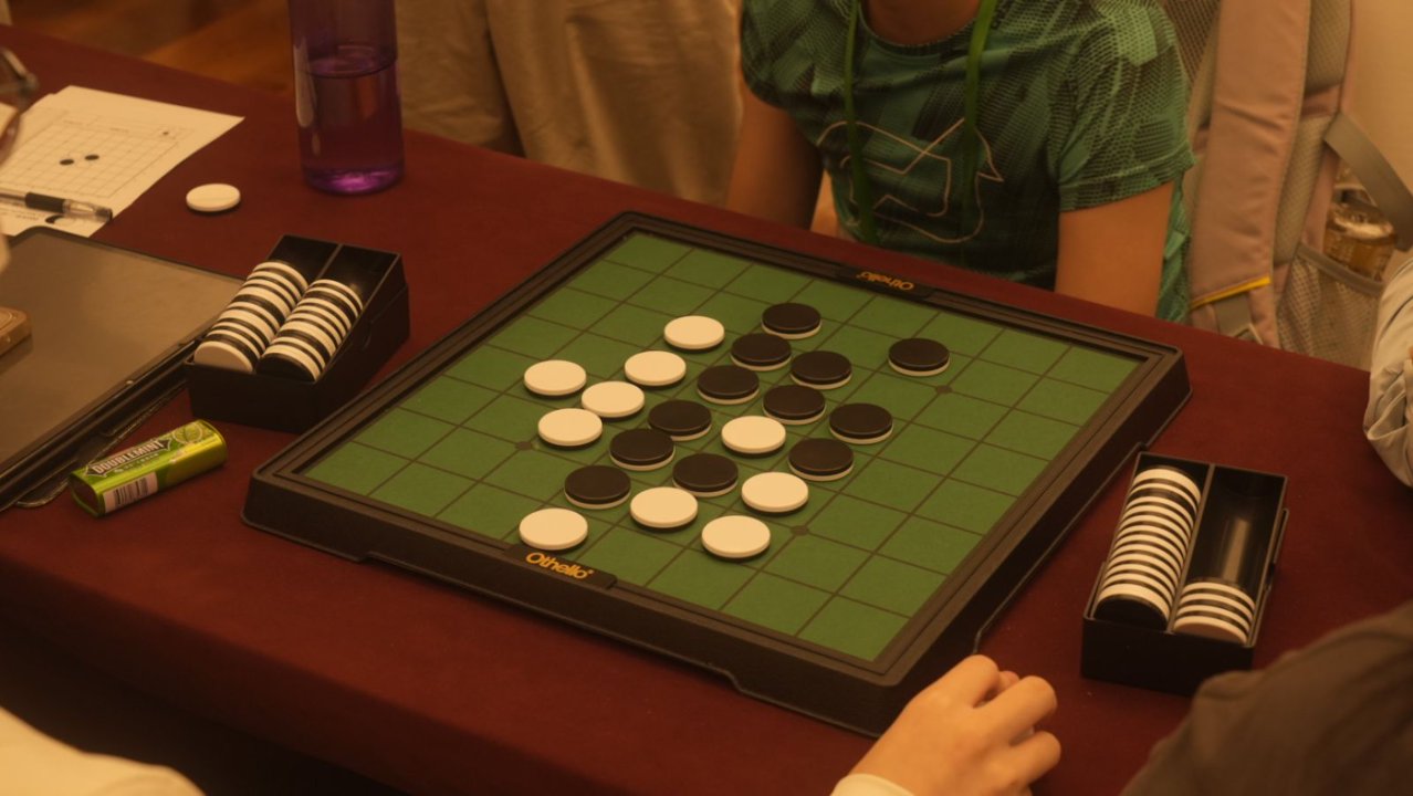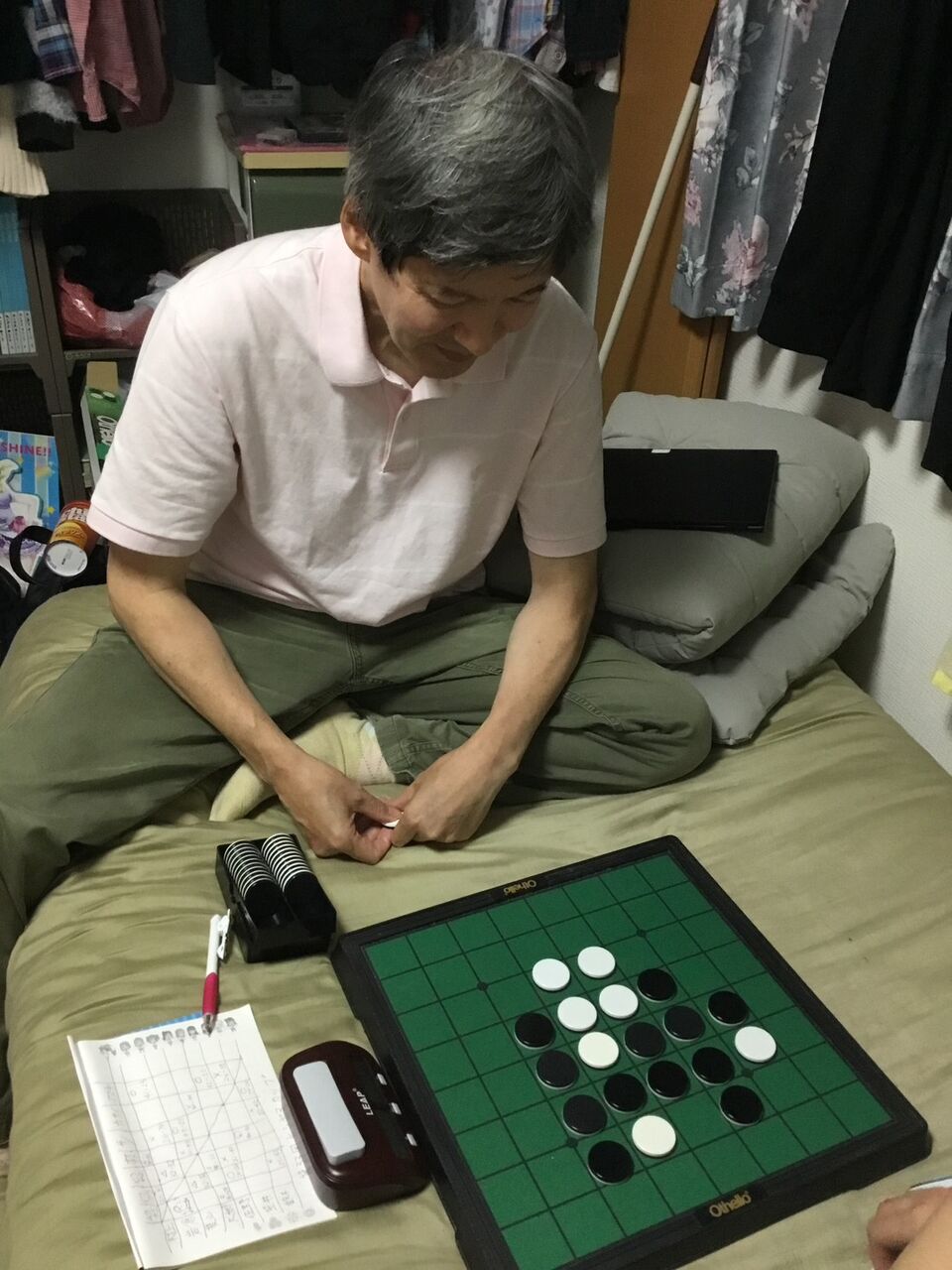 序盤からずっと難しい戦いが続き図。ここで打たれた白a5が4石差損の敗着となりました。図の正解は白g2。以下黒b2→a7!が好手。以下黒a6→白a1→黒a2→白a5までで白は左辺を確保できるのでした。しかしこれは非常に分かりにくい。。。その後も黒d8→白b7→黒b8→白a8で引き分ける、ということを読むのも非常に難しいです。