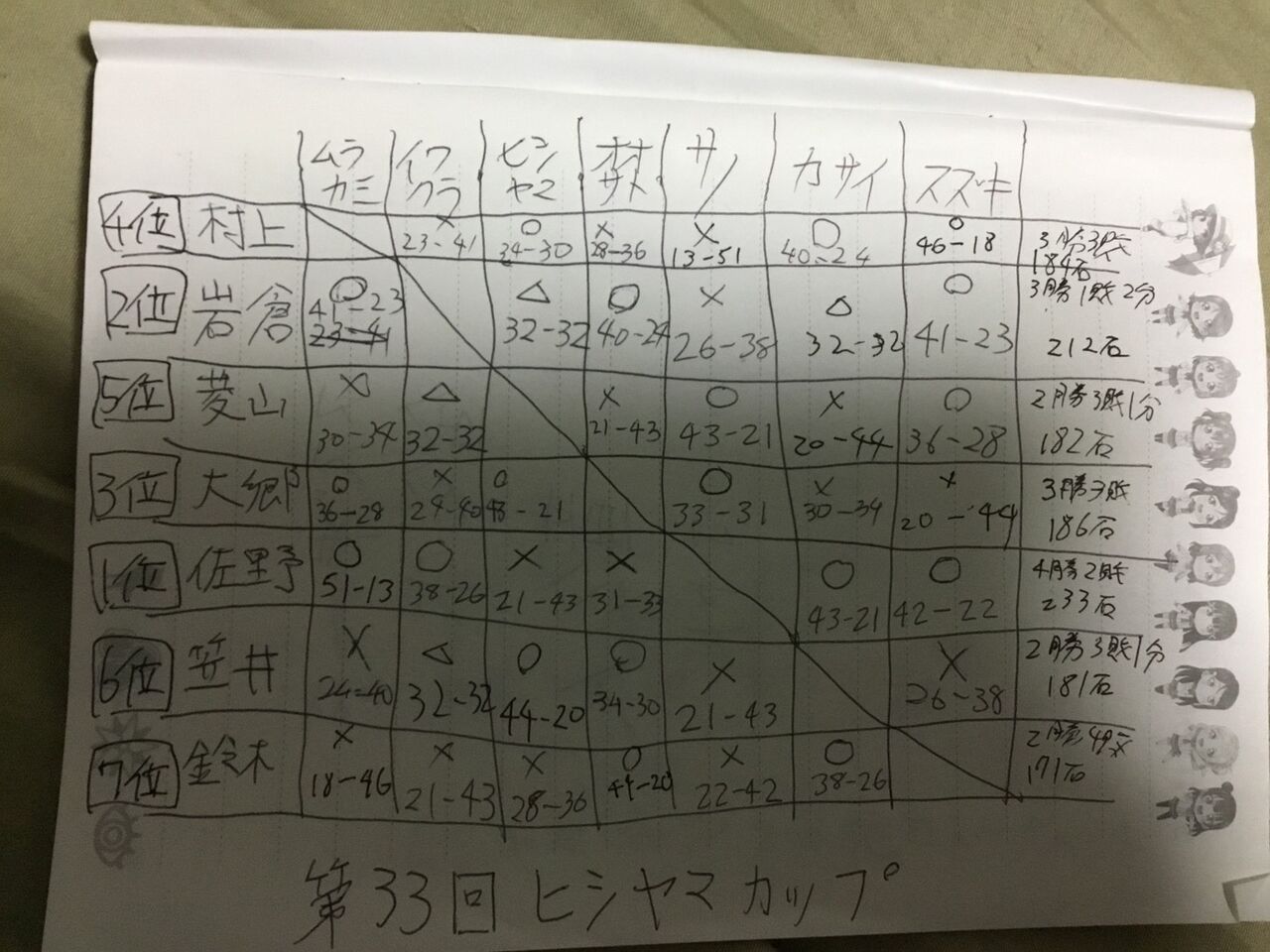 結果は3勝3敗で15位。また次の機会に頑張ります。