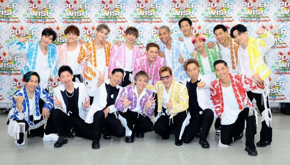 ファンとクリスマス気分を味わったEXILEの(前列左から)橘ケンチ、MAKIDAI、MATSU、TAKAHIRO、ATSUSHI、USA、AKIRA、(後列同)佐藤大樹、白濱亜嵐、岩田剛典、NAOTO、SHOKICHI、NESMITH、小林直己、世界、関口メンディー、TETSUYA