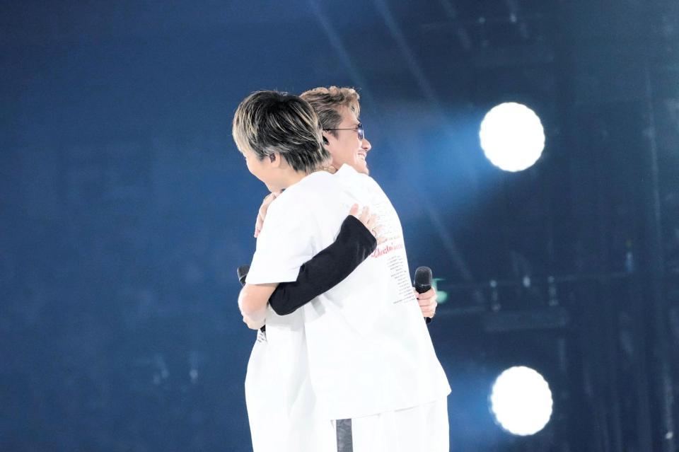 熱い抱擁を交わすATSUSHI(奥)TAKAHIRO
